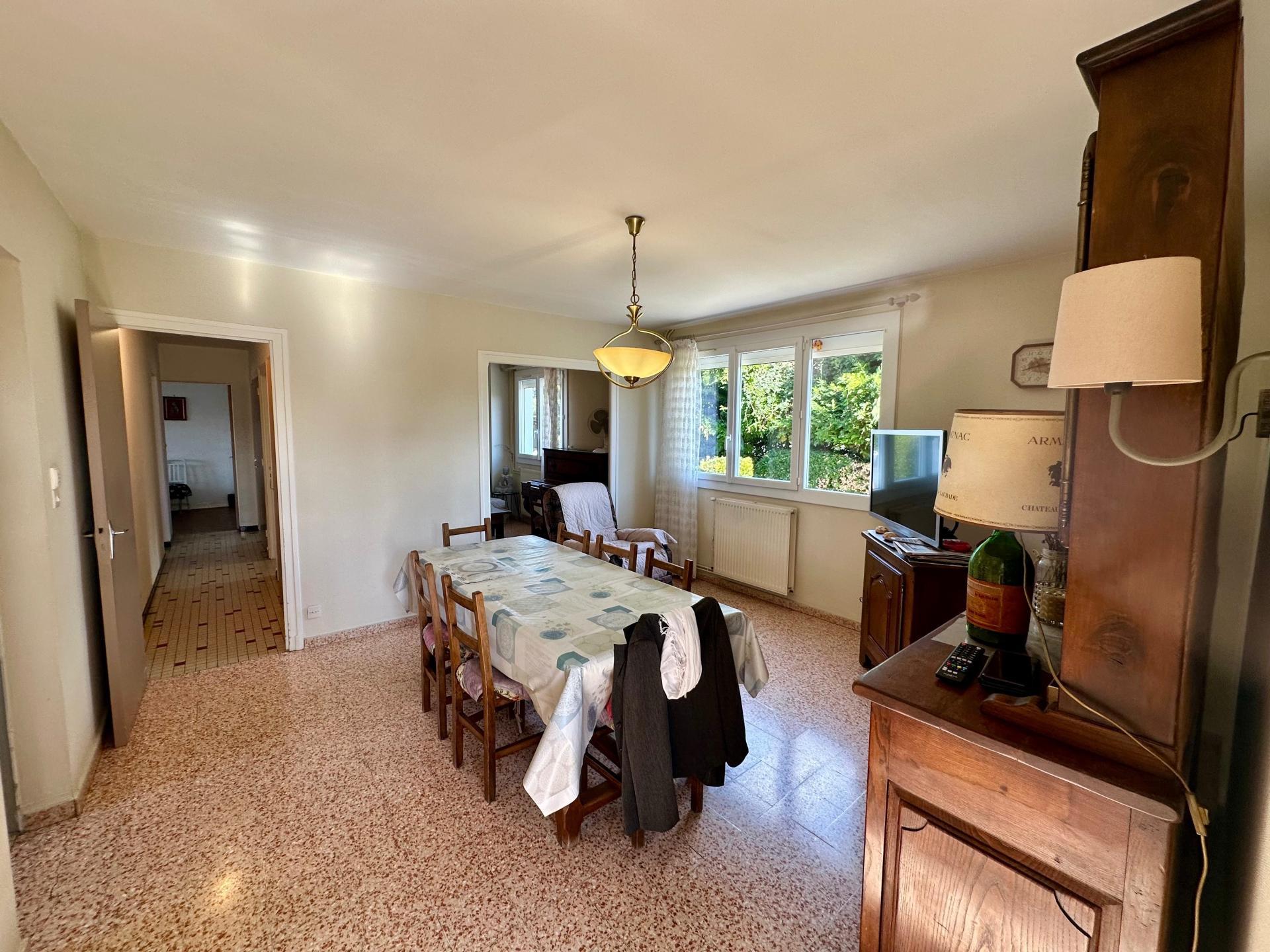 Maison des années 1970 d'environ 92m² avec garage sur un terrain entièrement clos de 1700m² avec puit.