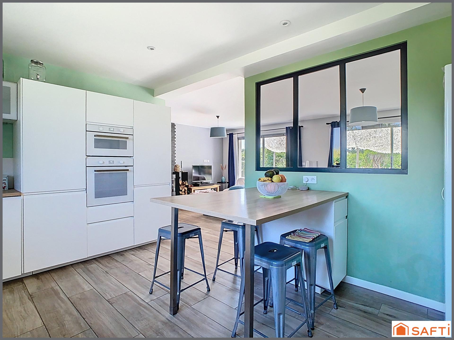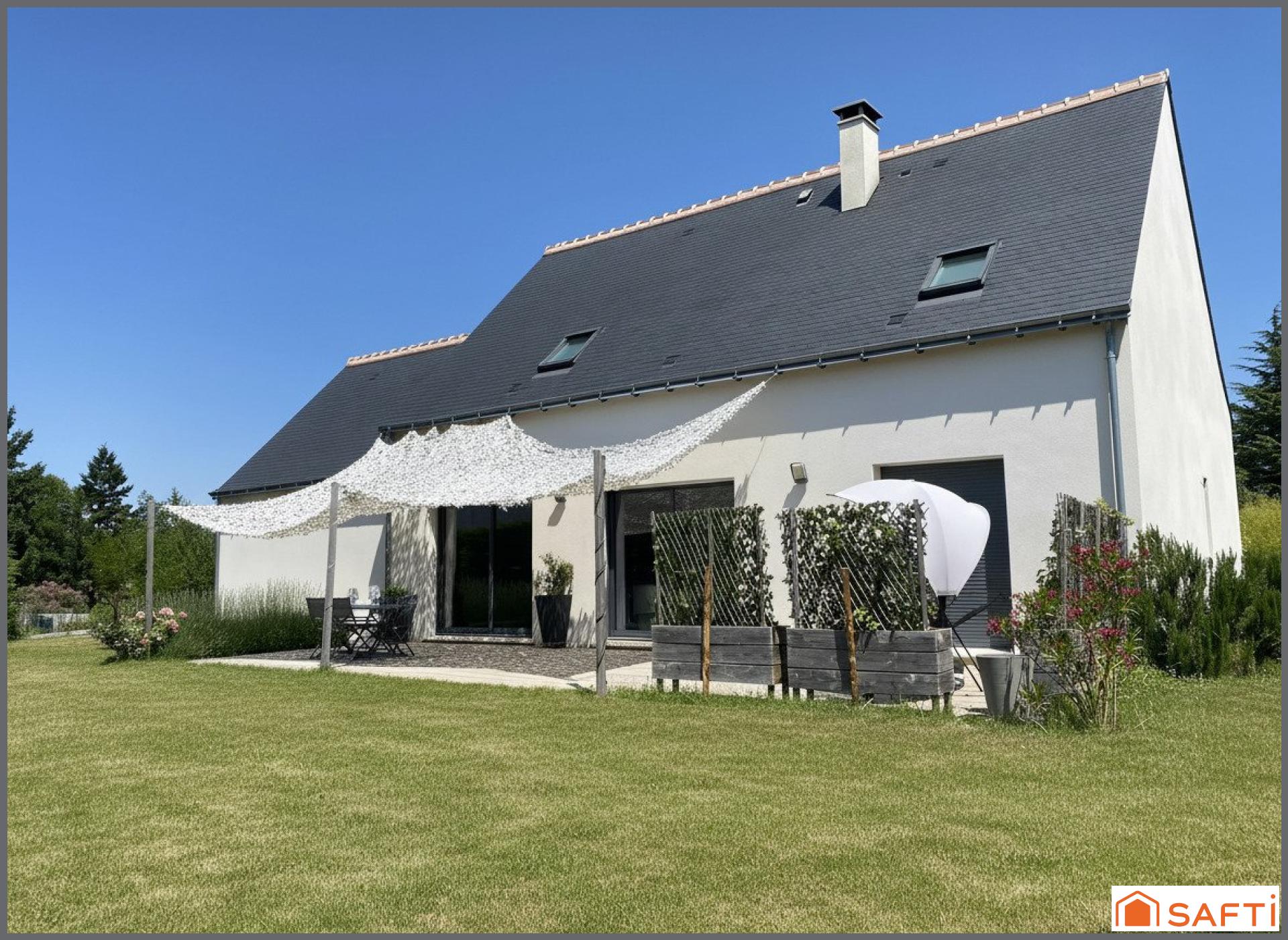 Dans un quartier calme, proche de toutes les commodités du centre bourg et des axes principaux, venez poser vos valises dans cette charmante et agréable maison d'architecte de 2019 de 147 m2. En rez de jardin, vous profitez d'une magnifique entrée, d'un vaste et lumineux séjour avec poêle à bois et accès sur une grande terrasse ensoleillée de 60 m2, d'une cuisine moderne aménagée et équipée avec coin repas, d'une arrière cuisine buanderie, d'un wc invité, d'un espace parental composé d'une chambre, d'un dressing et d'une salle de bains avec cabine de douche, baignoire et wc. L'étage offre de beaux volumes composés d'un bureau en mezzanine, d'un wc et de 3 chambres avec chacune sa salle d'eau privative. Vous bénéficiez aussi d'un garage attenant d'environ 30 m2 avec son grenier aménageable. La parcelle de 1000 m2 est totalement clôturée et piscinable. A votre écoute pour une visite .