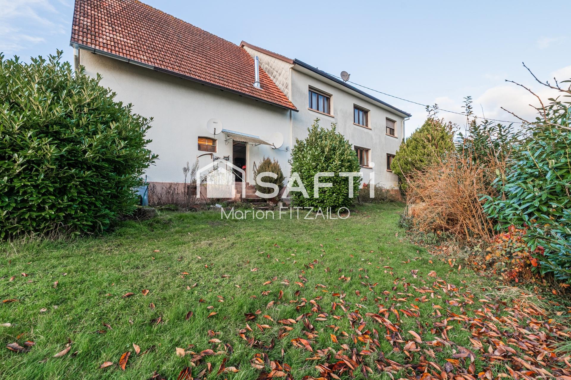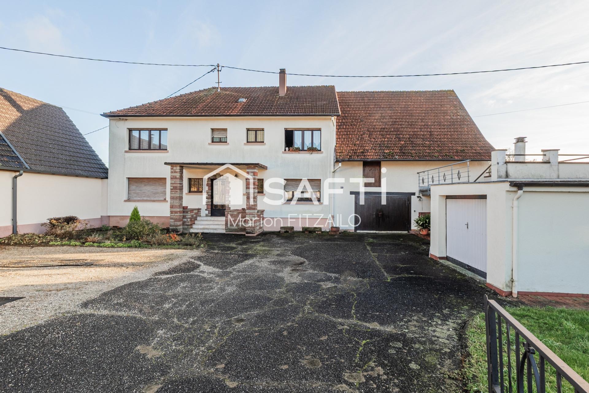 Située dans le village paisible de Neuhaeusel (67480), cette maison des années 1970 offre un cadre de vie agréable entre nature et accessibilité. Édifiée sur une parcelle de 720 m², elle développe une surface habitable de 179,67 m² répartie en 6 pièces, actuellement divisées en deux logements 3 pièces, une configuration idéale pour un projet locatif, familial ou intergénérationnel, tout en offrant la possibilité simple de réunir l’ensemble pour créer une seule grande maison. Le chauffage est assuré par un mode au fioul, garantissant confort et chaleur. Le bien dispose également de deux garages, d’une cour, ainsi que d’un jardin agréable à l’arrière.