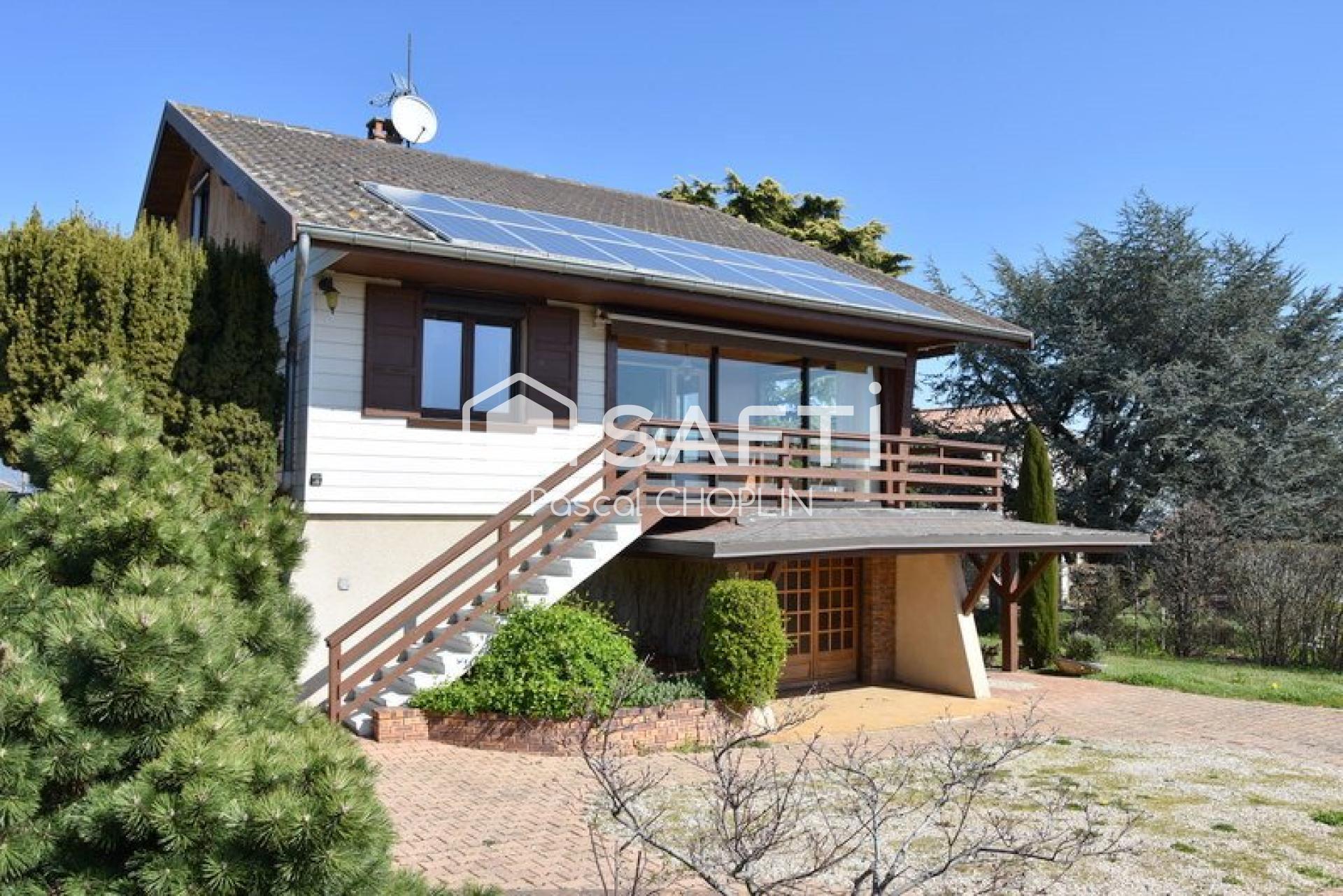 A 20mn de l’autoroute A7, cette grande maison style chalet, construite en 1963 par ART & BOIS, est idéalement située dans le centre de la commune de Roiffieux, à proximité des commodités à pied, sur une parcelle de terrain close et arborée d’une superficie de 1056m² avec portail bois motorisé, cuve de récupération d'eau de pluie et arrosage automatique, offrant à l’arrière une terrasse ainsi que de nombreux cabanons en bois.