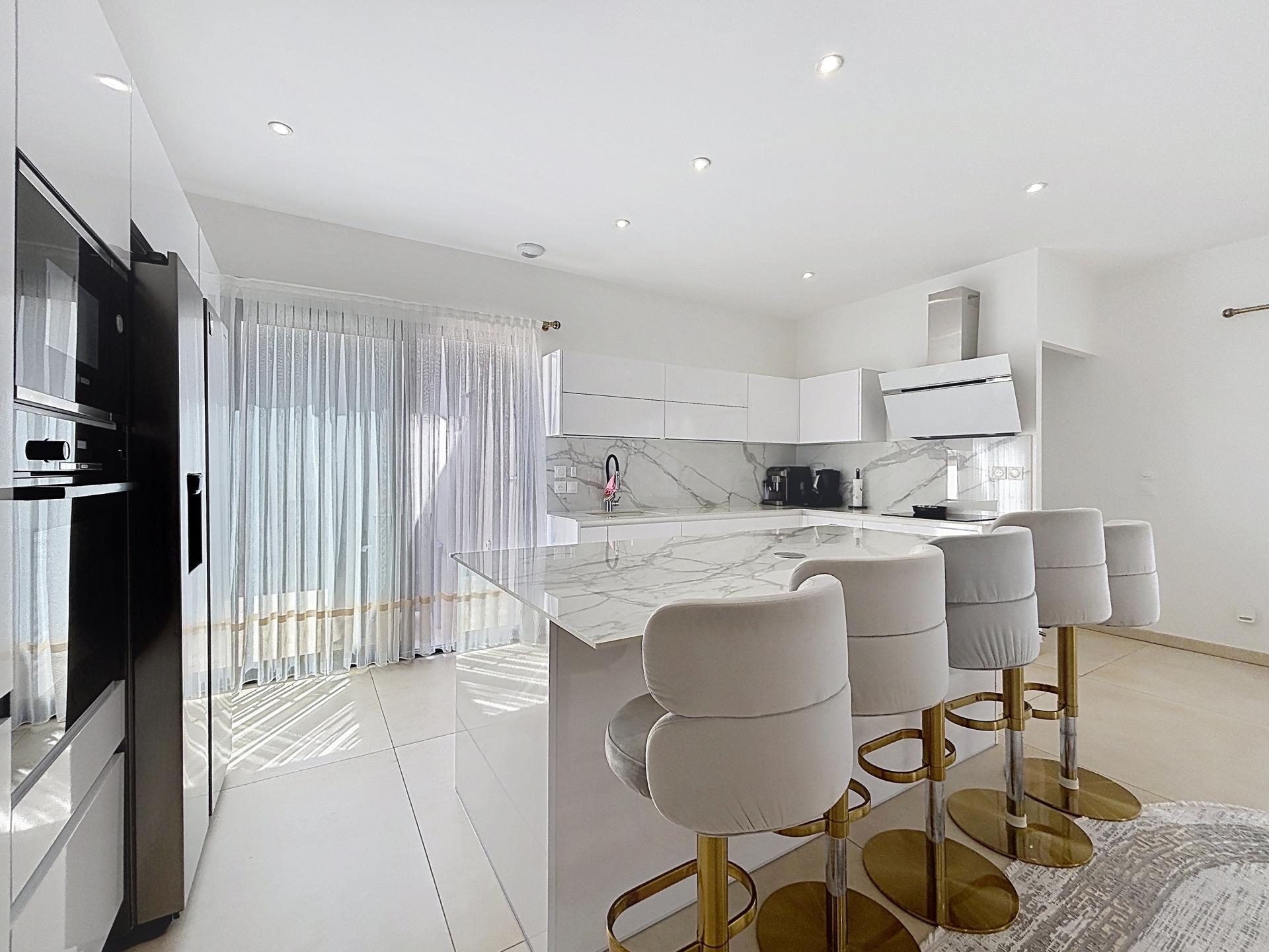 Espace de vie XXL : Un séjour spacieux de 67 m² avec cuisine ouverte entièrement équipée et aménagée avec des matériaux de standing.