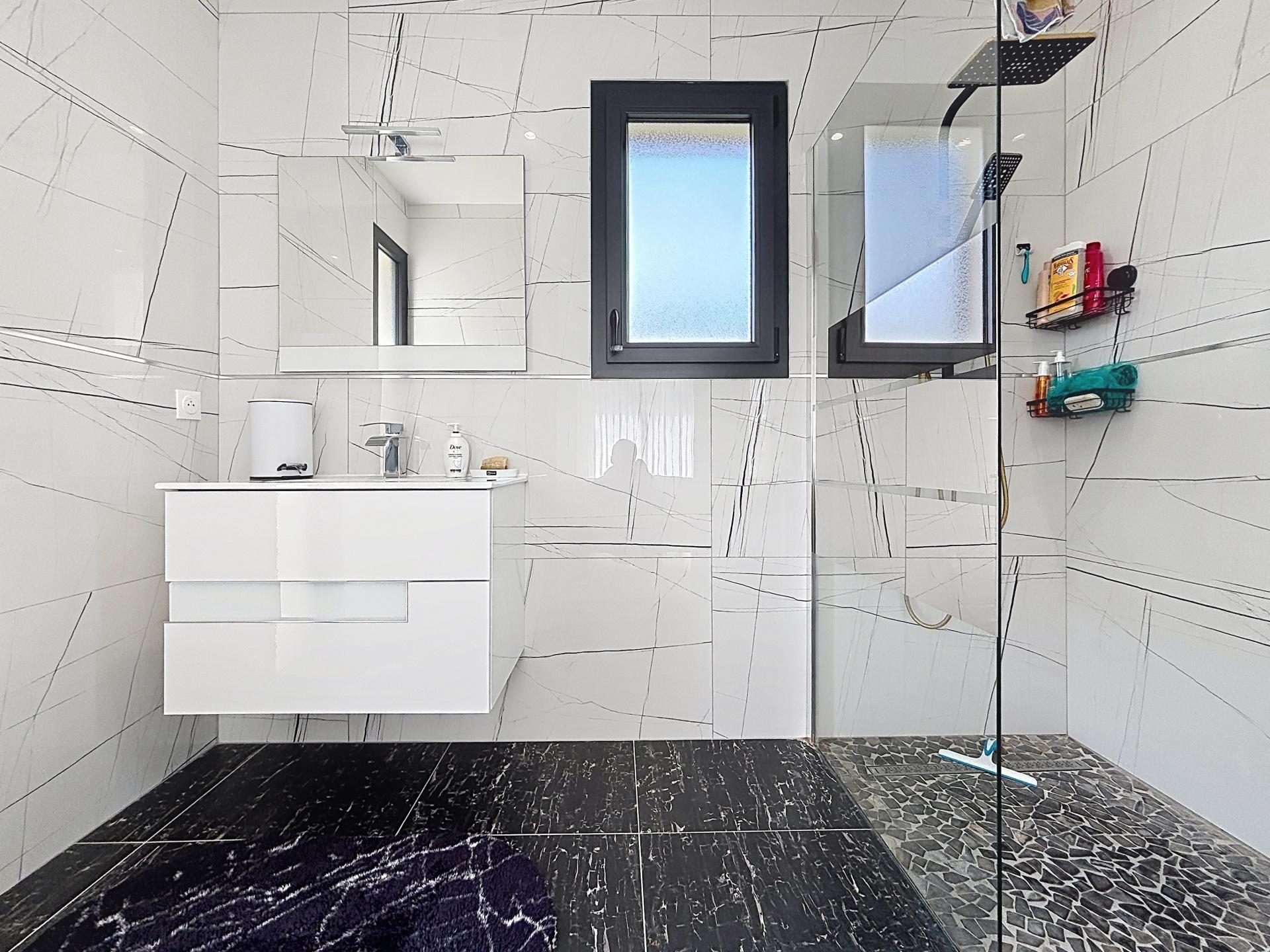 Espaces d'eau & Commodités : Une grande salle de bain lumineuse de 8,3 m², deux WC séparés, une entrée avec rangements et une buanderie/cellier fonctionnelle de 5,3 m².