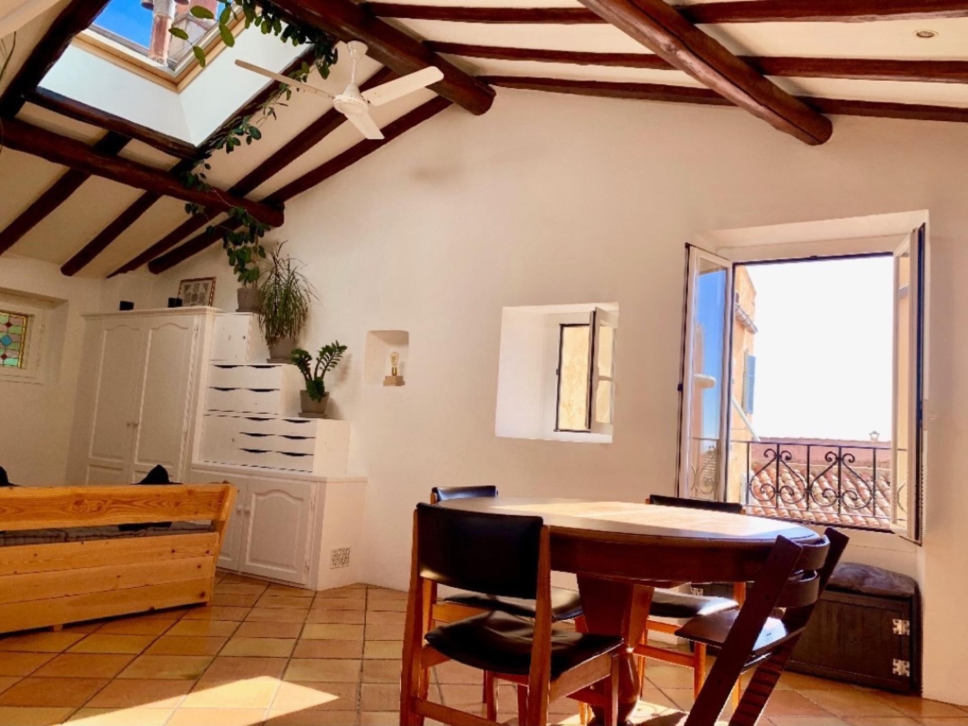 Roquebrune village : Maison de village atypique construite en 1920 sur 4 étages de 92 m2, lumineuse et au calme, composée d'une cuisine, d'un spacieux salon séjour, d'un deuxième salon (possibilité d'en faire une chambre), d'une salle d'eau avec wc, d'une salle de bain avec wc, de 2 chambres, d'une tropézienne sur le toit et d'une cave. Possibilité d'acquérir en sus un bel atelier d'artiste de 32m2. A VOIR