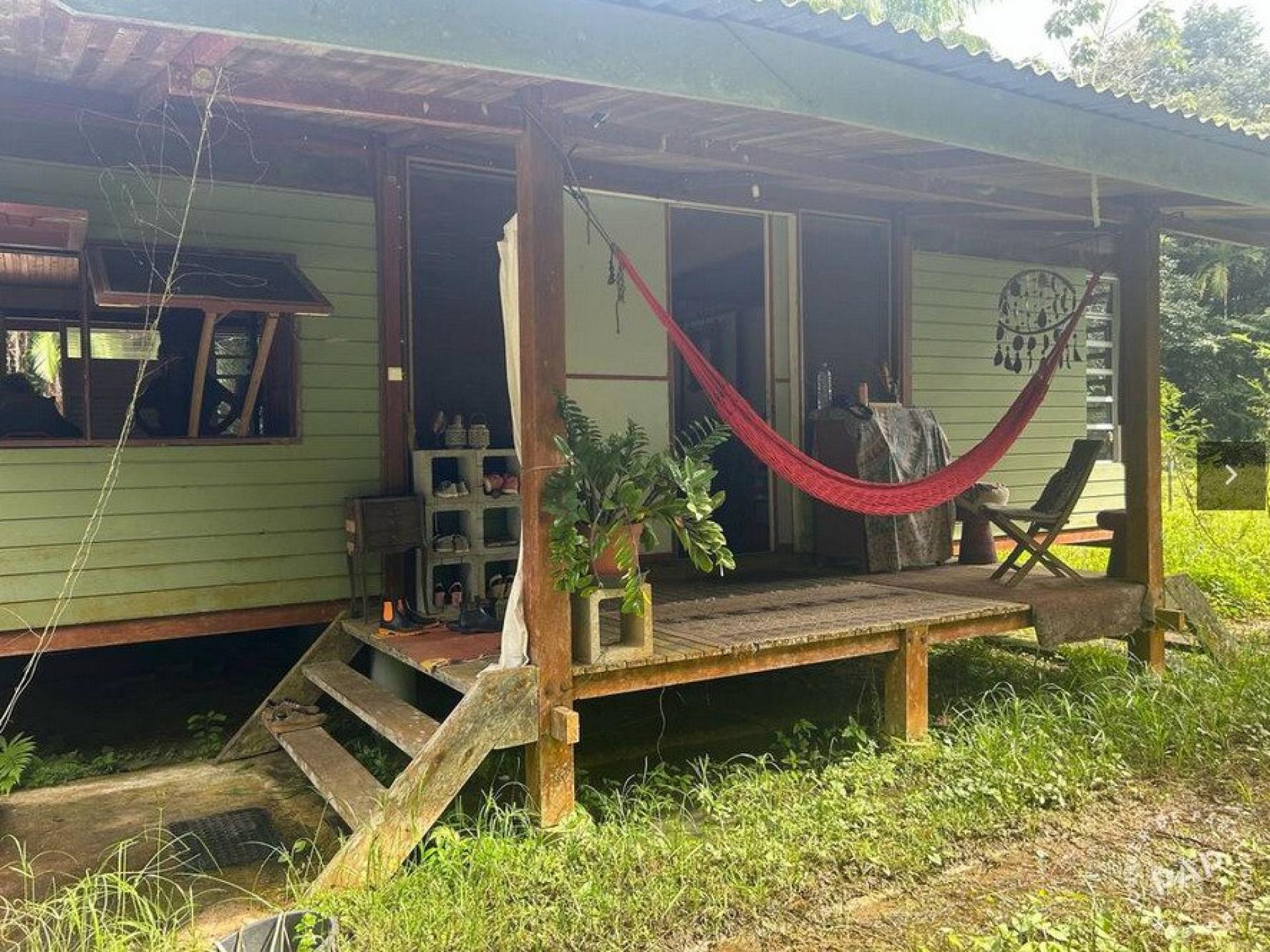 En Guyane, à Roura et ses nombreux sites naturels (Marais Kaw, Eskol, chutes Fourgassier, Favard, la réserve Trésor, la rivière Oyak et ses méandres ... mais aussi l'église du 17ème, les guides et carbets/gites, le village de Cacao, son passé chargé d'histoire ...) SAFTI vous propose une villa bois rustique à la consonance bioclimatique. Un T4, pourvu de 3 chambres, 2 salles d'eau, 2 Wc, un séjour s'ouvrant sur une terrasse au moyen de portiques pivotants lui conférent un charme particulier. Un coin sale à manger/bar cuisine en extérieur, aussi atypique que reposant, le tout sur deux parcelles d'un total de 4970m2 --- Amoureux de la nature, à découvrir !