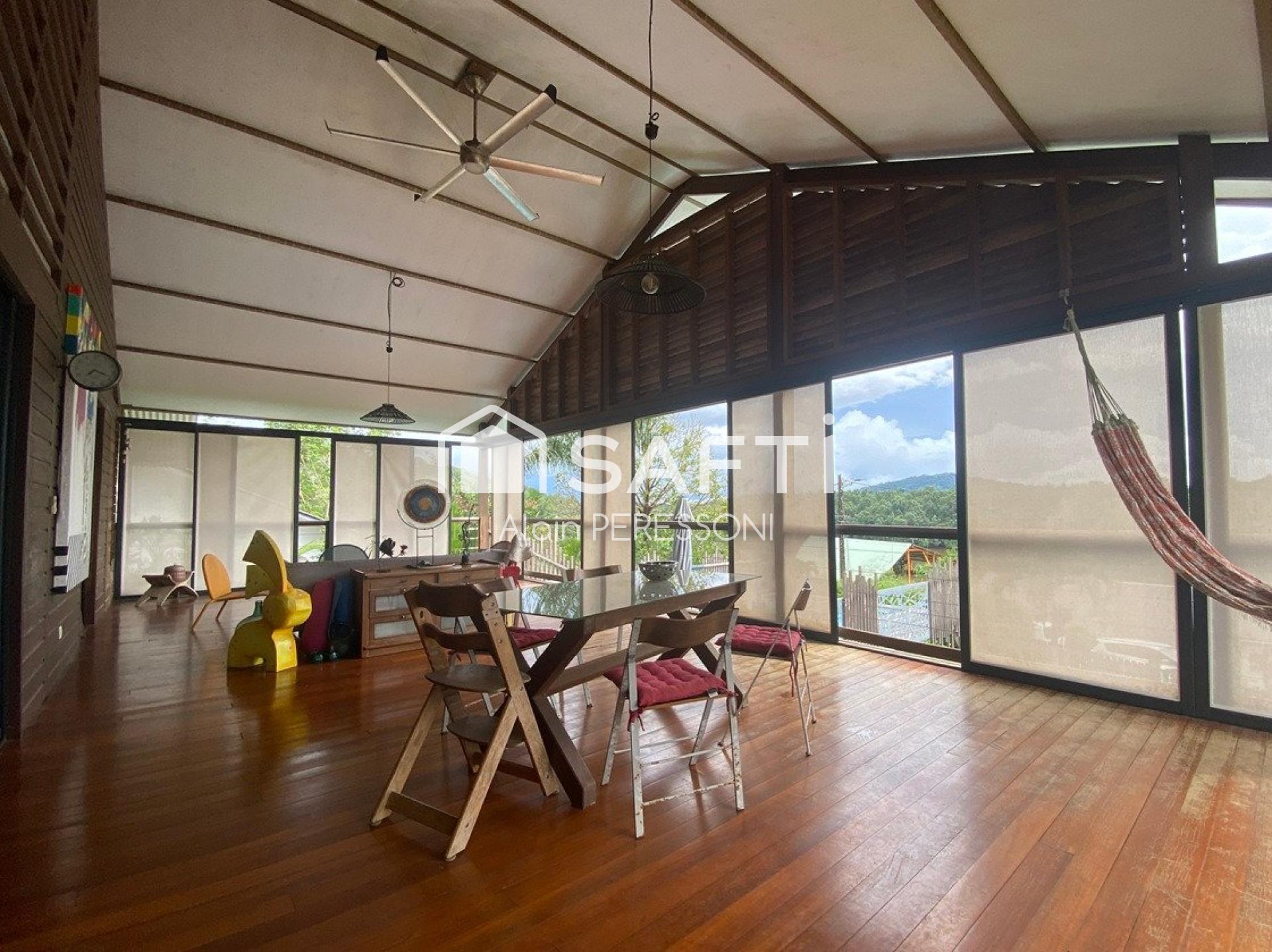 En Guyane, à Roura et ses nombreux sites naturels (Marais Kaw, Eskol, chutes Fourgassier, Favard, la réserve Trésor, la rivière Oyak et ses méandres, mais aussi l'église du 17ème, les guides et carbets/gites de la commune, le village de Cacao, sa futur marina et son projet écotouristique de la rive droite du fleuve Mahury ...) SAFTI vous présente ce bien d'exception, alliant charme, confort et modernité. Aménagé avec gout, doté d' équipements récents, de bonne facture, il vous séduira j'en suis certain ! 6 pièces sur 164m2, avec piscine, terrasse et grand bureau, 2 salles d'eau, 2 wc, un séjour/terrasse on ne peu plus atypique, une cuisine récente accueillante et fonctionnelle, une mezzanine de 34m2 mansardée aux allures de loft, avec sa chambre dérobée (non comptée dans la surface habitable) Rivière en point de mire, depuis la piscine, groupe électrogène automatisé, en alimentation de secours.... les photos parlent d'elles-même ! A vos agendas.