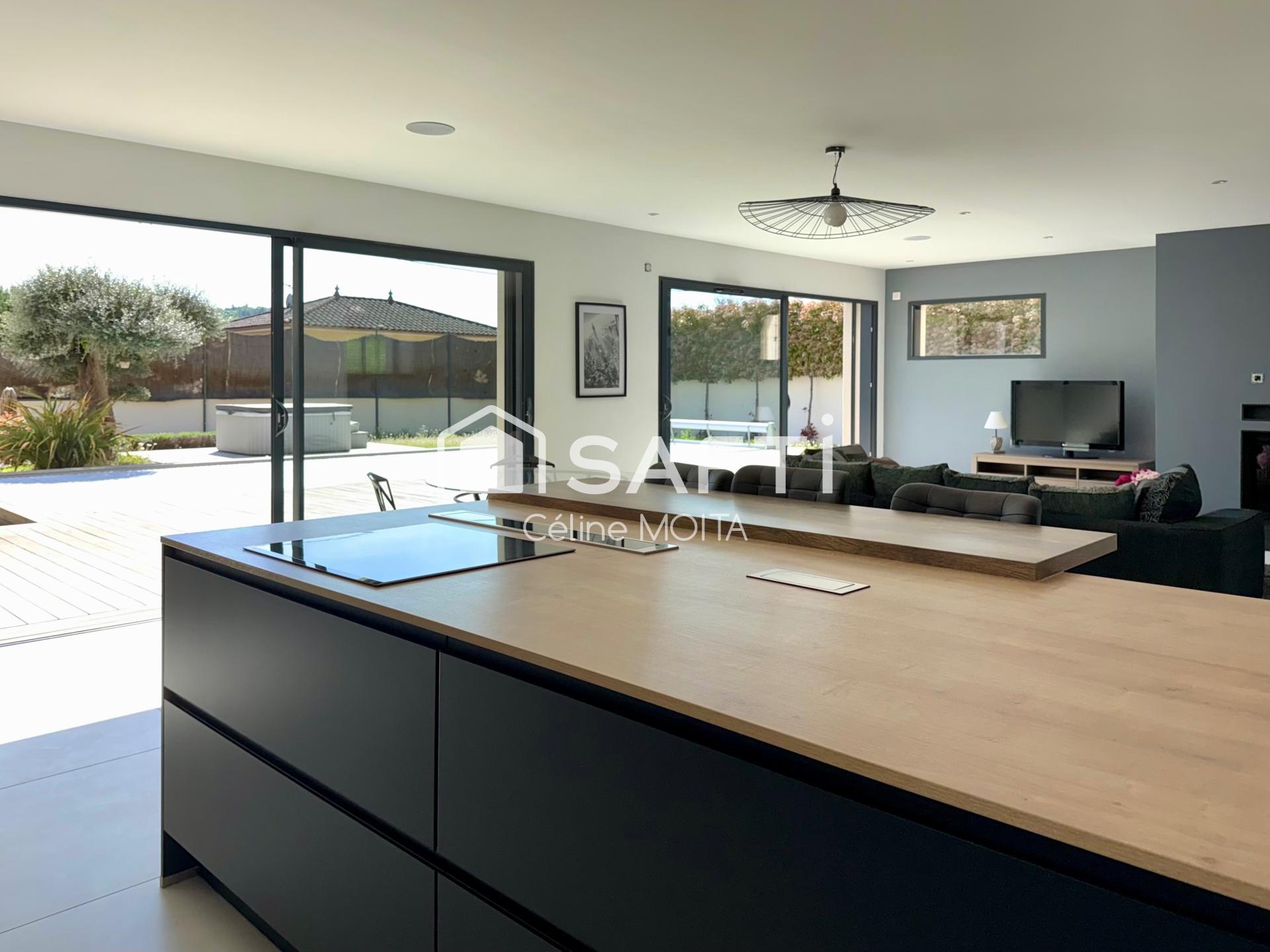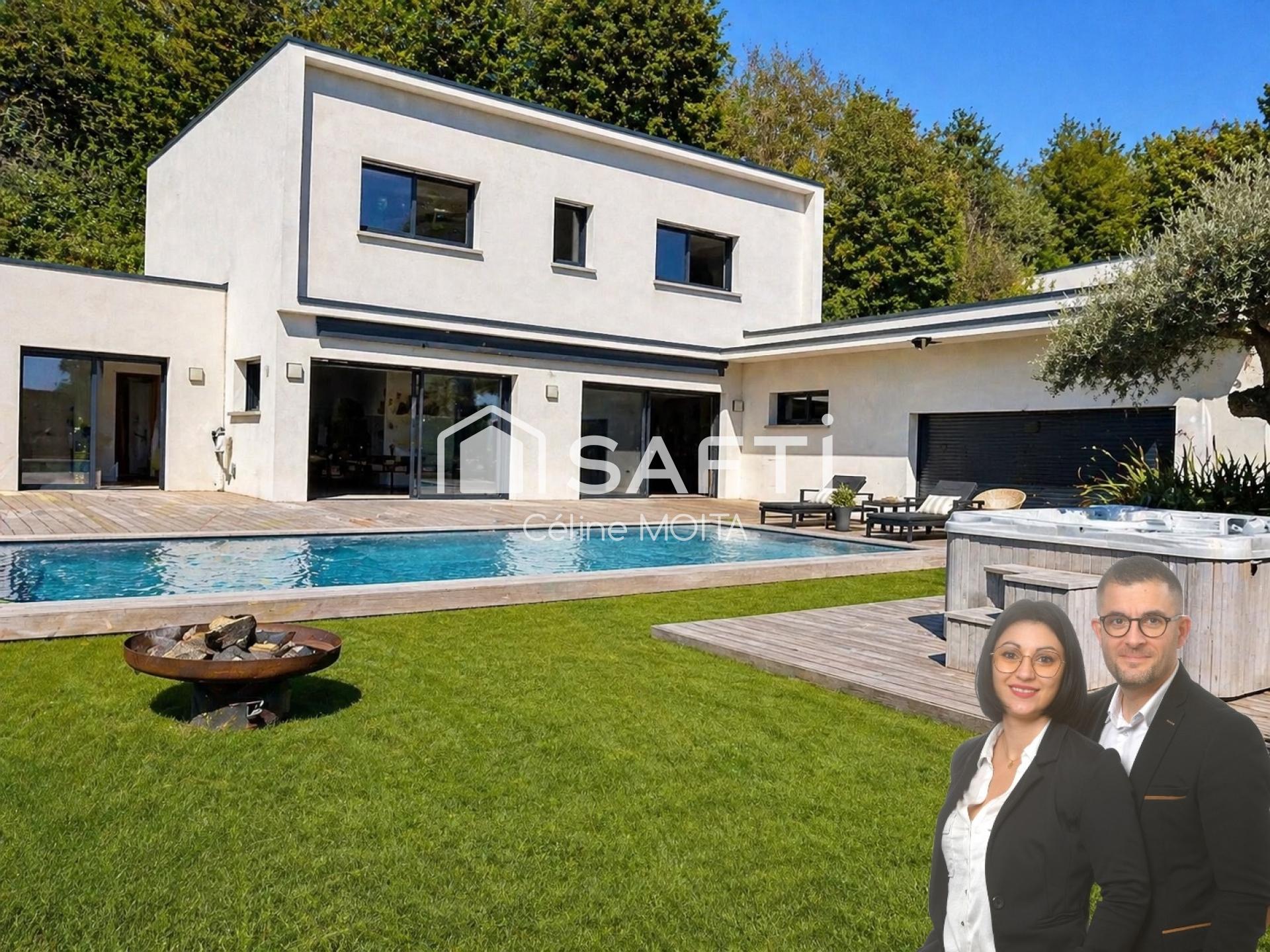 Villa d’architecte aux prestations haut de gamme : piscine chauffée, jacuzzi, home cinéma, bar, espace sport et cave à vin