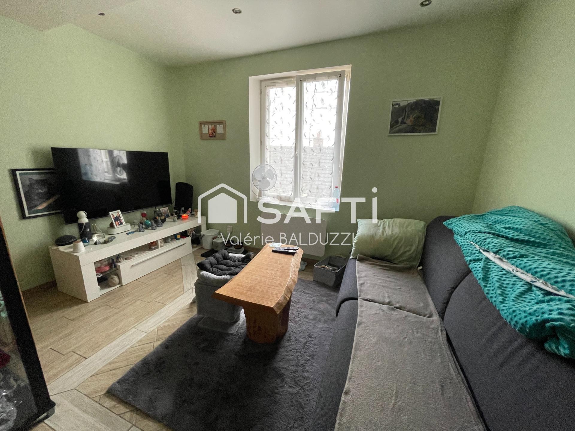 Mieux qu'un appartement , pas de charge de copropriété .Maison de ville comprenant : entrée sur cuisine aménagée et équipée, salle d'eau avec wc, en dessous une chambre. Séjour, chambre. Atelier et cave. Gare Naviguo pour Paris à quelques minutes.