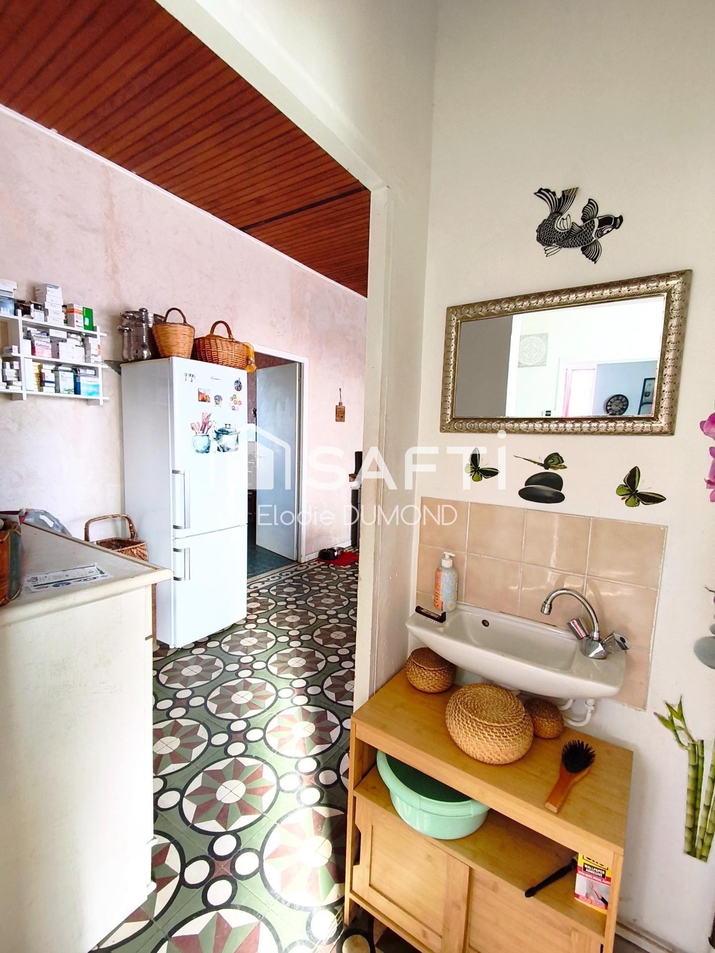 Dès l'entrée, vous serez séduit par un joli couloir au charme de l'ancien grâce à ses carreaux de ciment, une grande cuisine de 20 m2 disposant d'une clim réversible, un salon/salle à manger lumineux de 38 m2, une belle chambre de 19 m2 qui fait office de bureau, et un wc séparé.