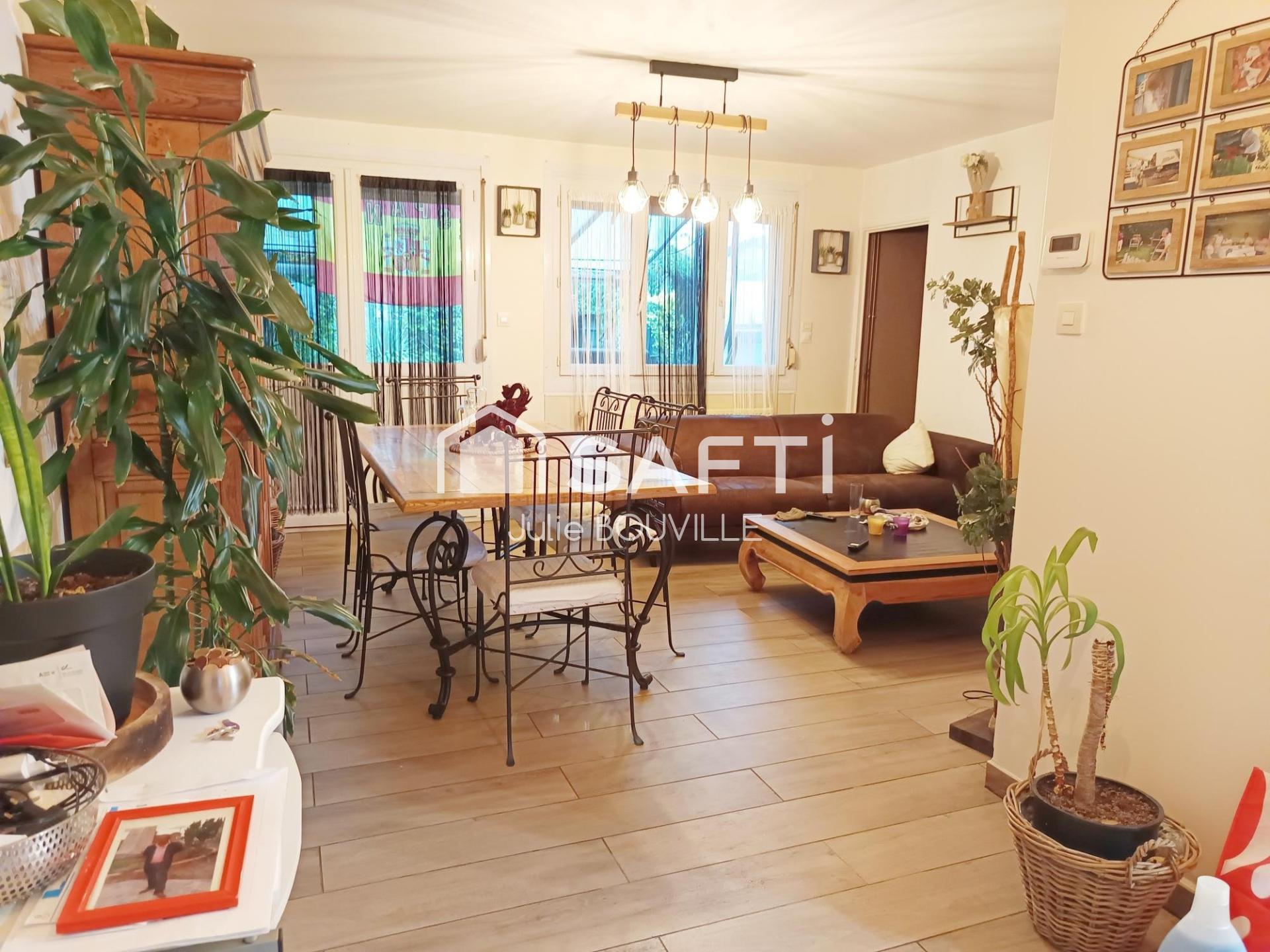 Le terrain de plus de 500 m² accueille une maison agréable comprenant un jardin, une terrasse avec pergola, un garage, un cellier, des dépendances ainsi qu'une place de parking extérieure.