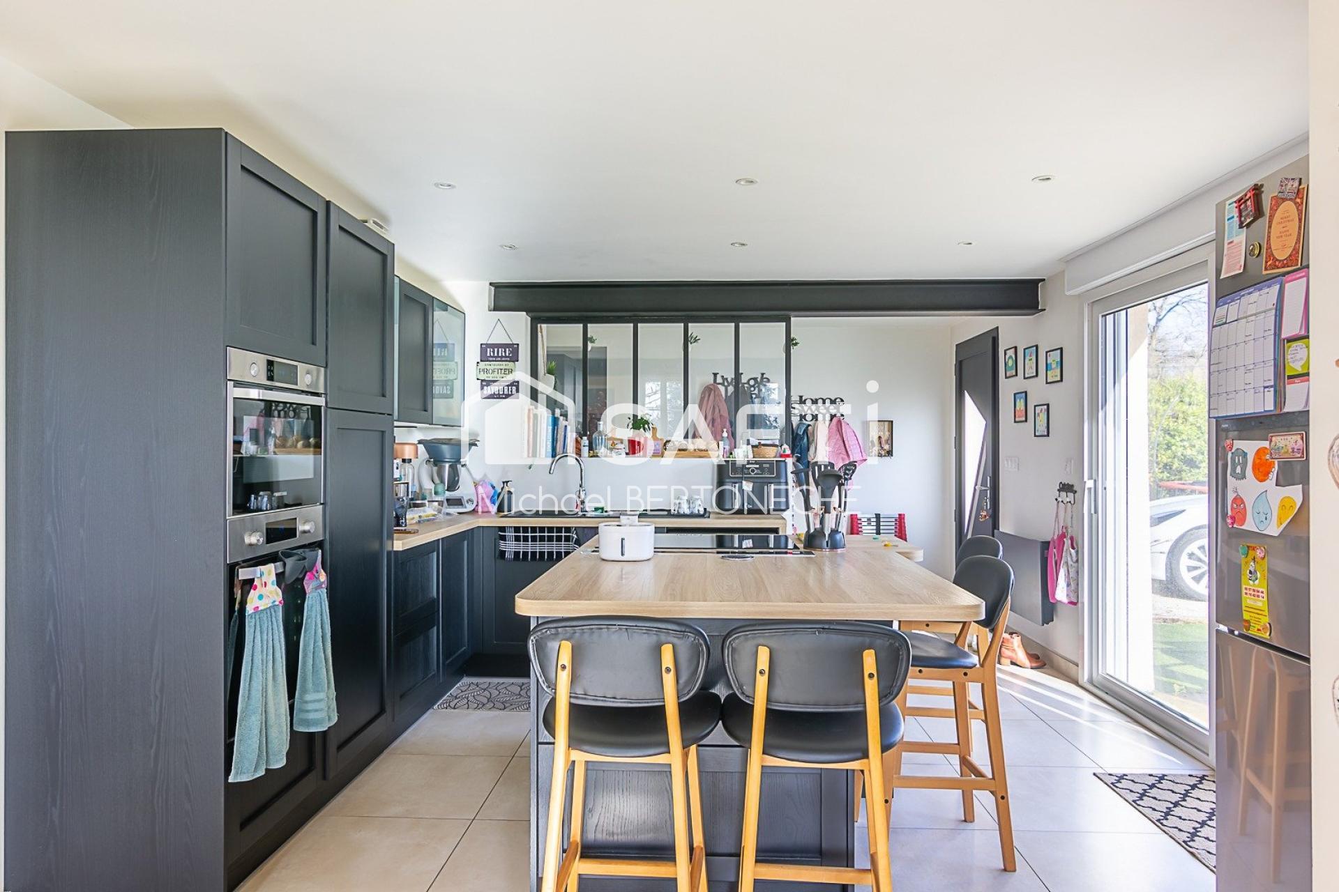Dès l’entrée, vous découvrez une maison chaleureuse avec une buanderie fonctionnelle, puis une cuisine ouverte moderne avec îlot central, idéale pour les moments de partage.