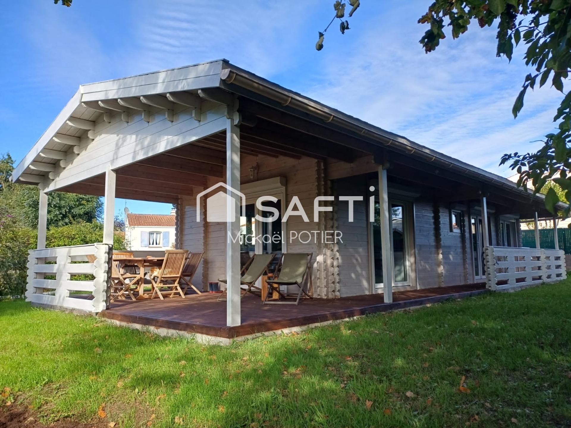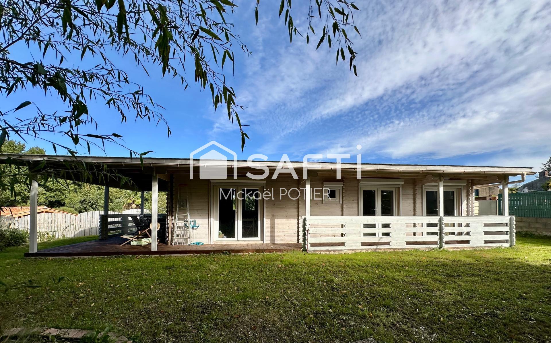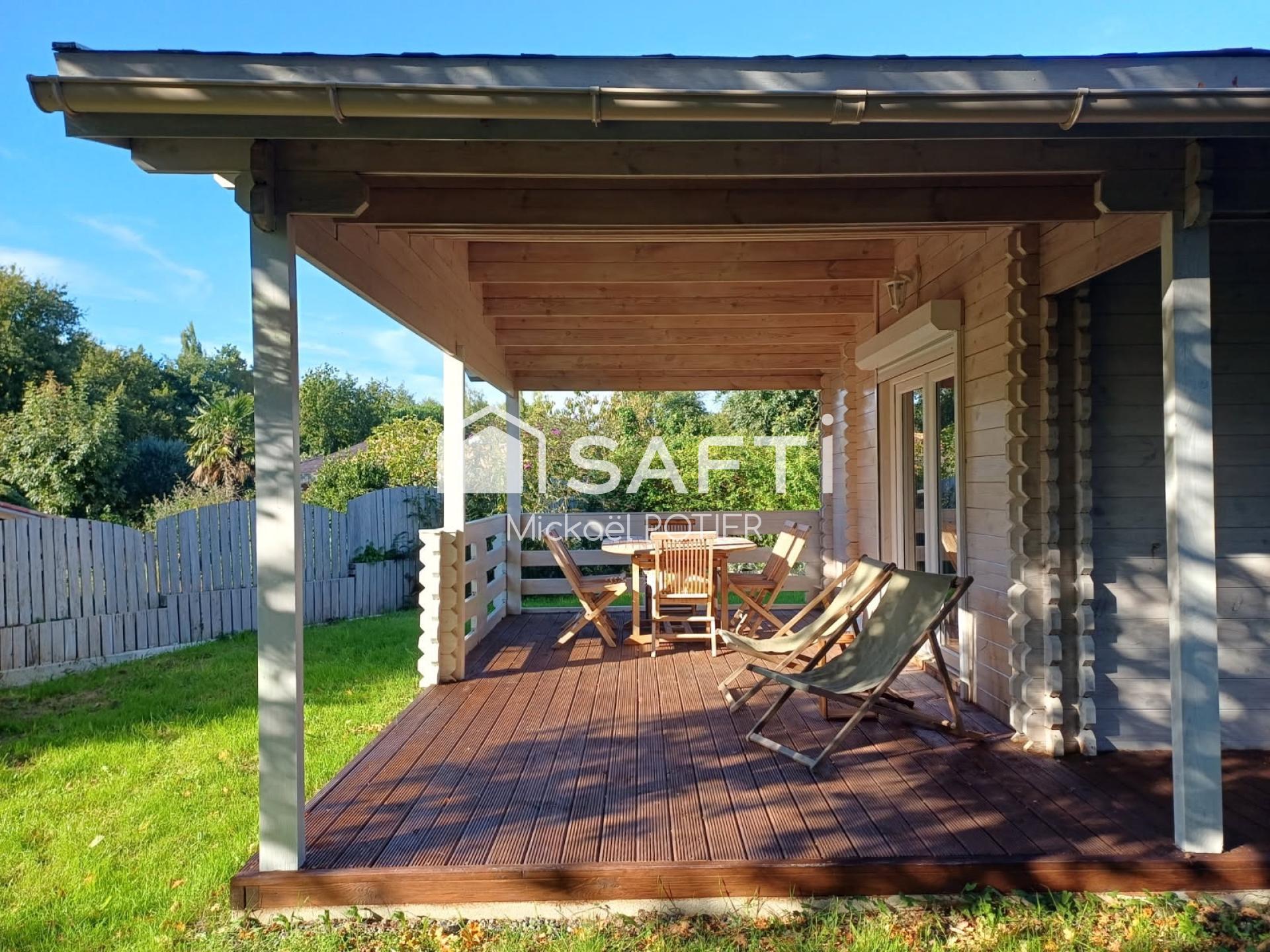 Maison en bois, 3 pièces, 45m2, située au fond d'une impasse proche du centre bourg de Saint Avaugourd Des Landes, dans un environnement calme et privilégié. Situation géographique idéale, 15mn des plages, 5mn de Moutiers Les Mauxfaits et 20mn de La Roche Sur Yon, cette commune dispose de deux écoles et de commerces de nécessité.