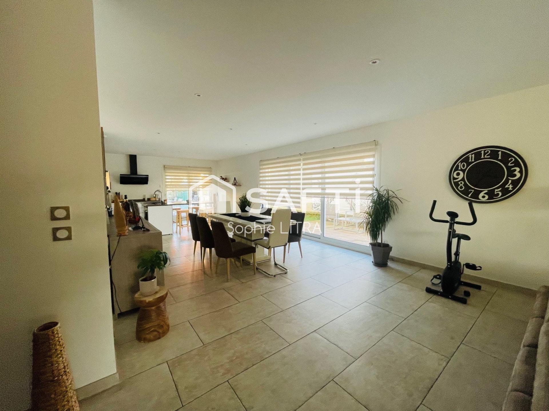 À l'intérieur, cette résidence de 159 m² propose 4 chambres spacieuses offrant un agencement rare et pratique pour une vie de plain-pied et la grande pièce de vie de près de 70m2 combine harmonieusement fonctionnalité et élégance.