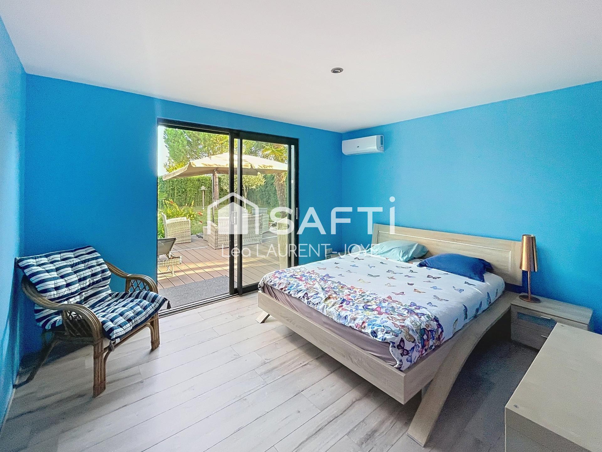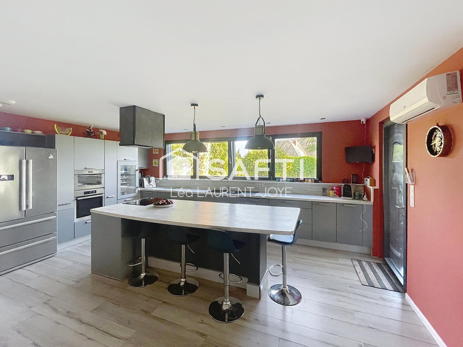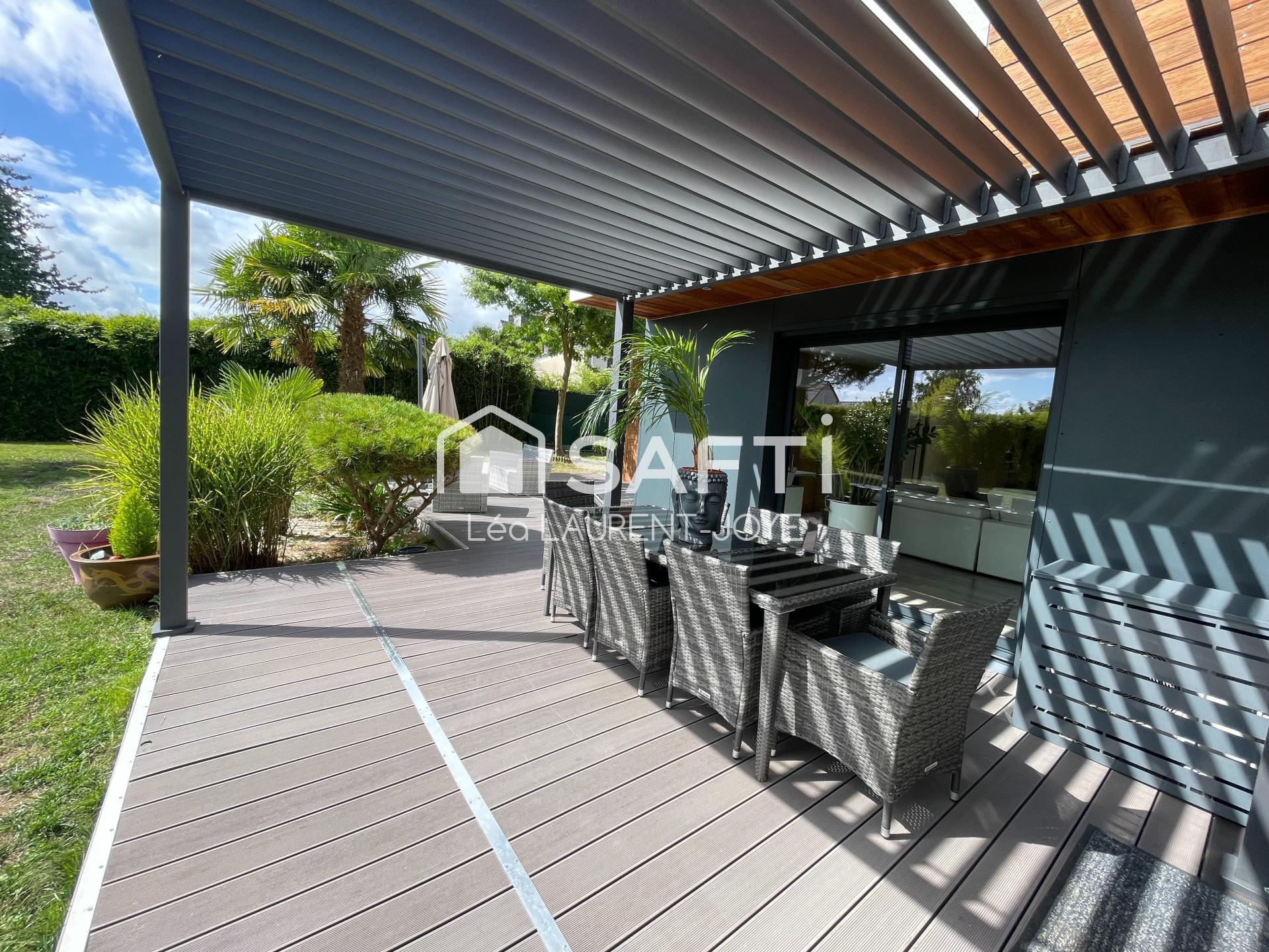 Construite en 2015, cette lumineuse maison exposée sud est enlacée par un vaste jardin paysagé offrant plusieurs terrasses dont une de 45m².