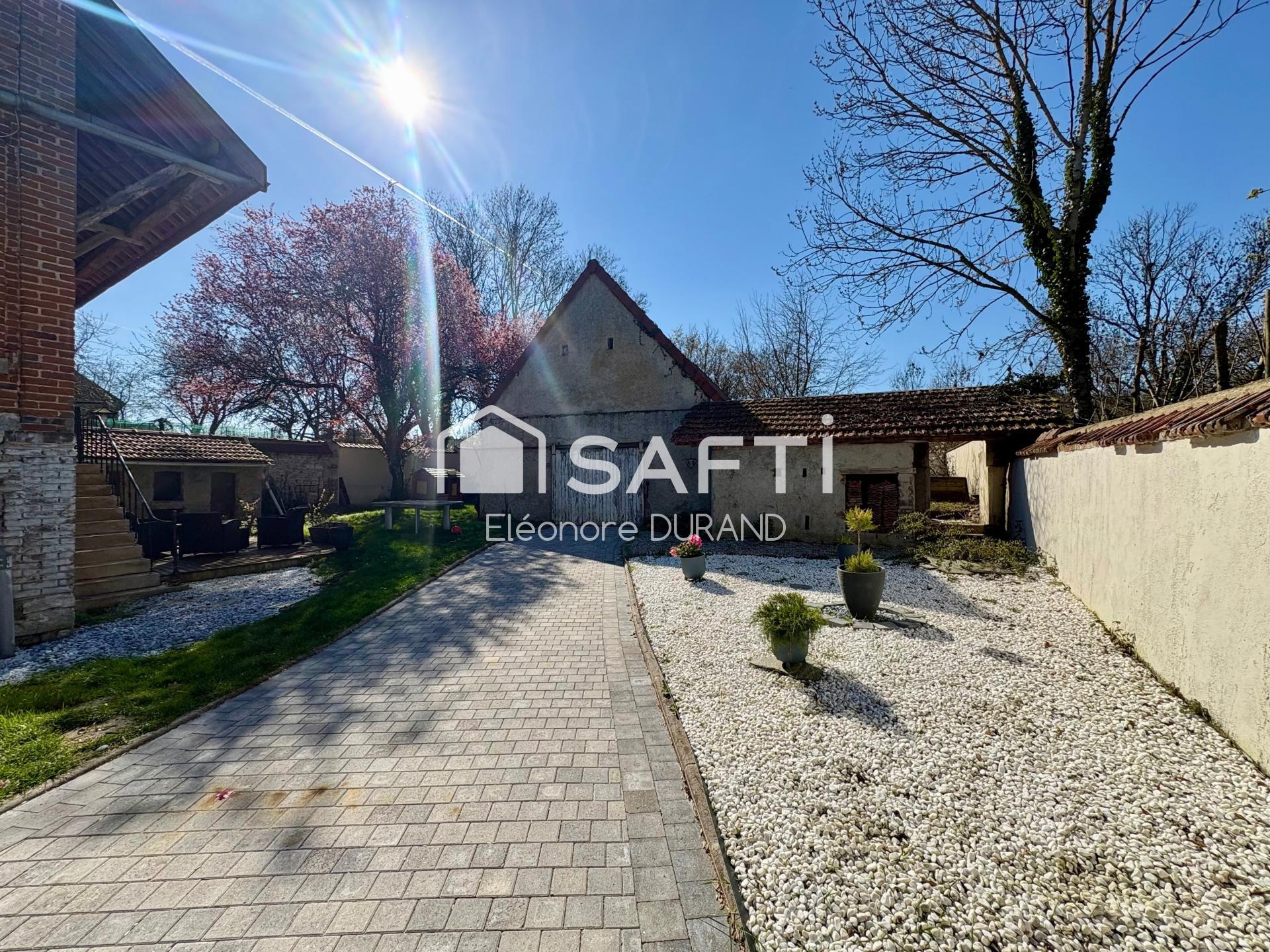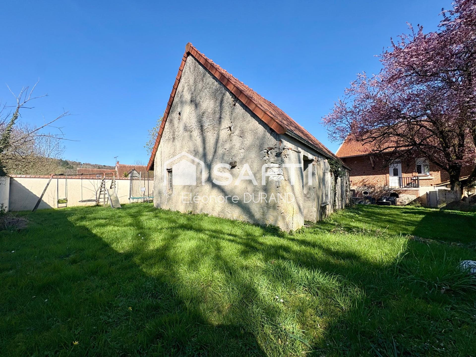 La pièce de vie se prolonge naturellement vers une terrasse conviviale, dominant un jardin bucolique et clos d’environ 500 m², véritable havre de paix pour les amoureux de nature. S’y ajoute une grange de 70 m² à restaurer, répartie sur deux niveaux, dont la toiture entièrement refaite en 2024 et bénéficie encore de sa garantie décennale, offrant un beau potentiel d’aménagement à réhabiliter.