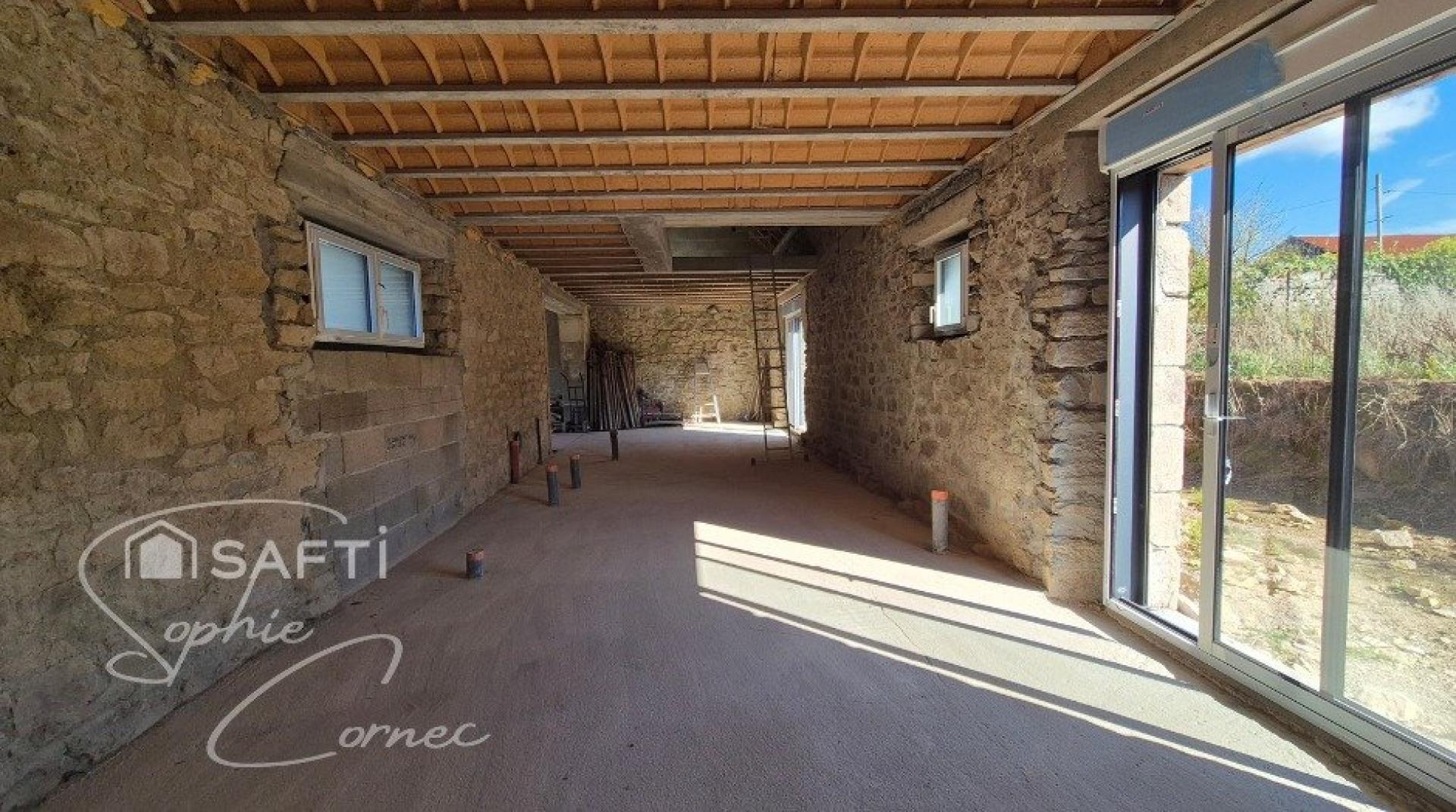 Il reste à faire le placo, les gaines à passer, l'isolation, la cuisine, le carrelage, l'enduit, la terrasse. 110m² habitables refaits à neuf avec l'union de la pierre et du moderne. A vous de terminer le projet selon vos goûts et couleurs.