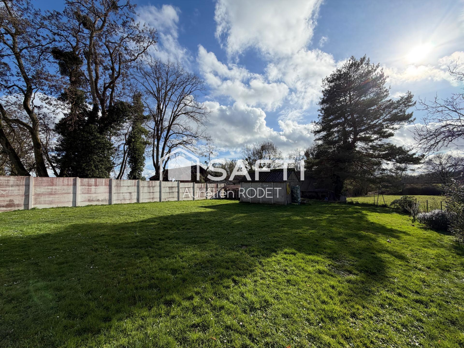 À l'extérieur, une petite terrasse à l'avant invite à la détente, tandis que deux garages non attenants offrent un espace de stationnement supplémentaire. Le jardin clos et arboré complète cet ensemble offrant un cadre de vie paisible et verdoyant.