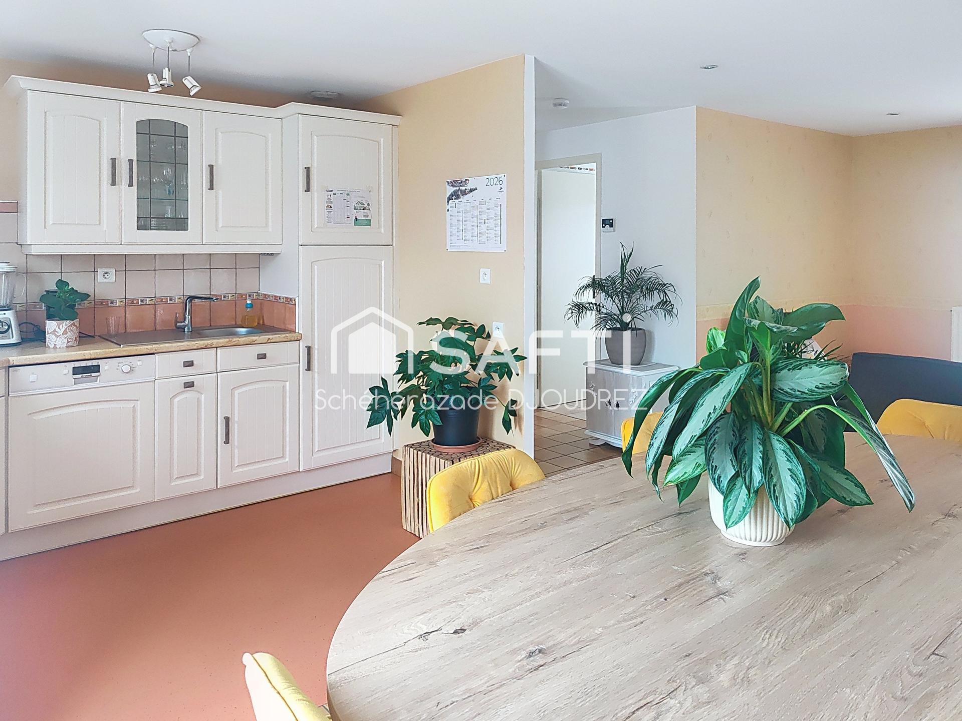 À l'intérieur, cette maison de 68 m² se compose d'un beau séjour / salon lumineux avec une cuisine ouverte équipée et aménagée, une buanderie, une salle d'eau, un toilette et deux chambres confortables. Baignée de lumière naturelle, cette propriété construite en 1987 offre un agencement fonctionnel et chaleureux, propice à une vie quotidienne agréable.