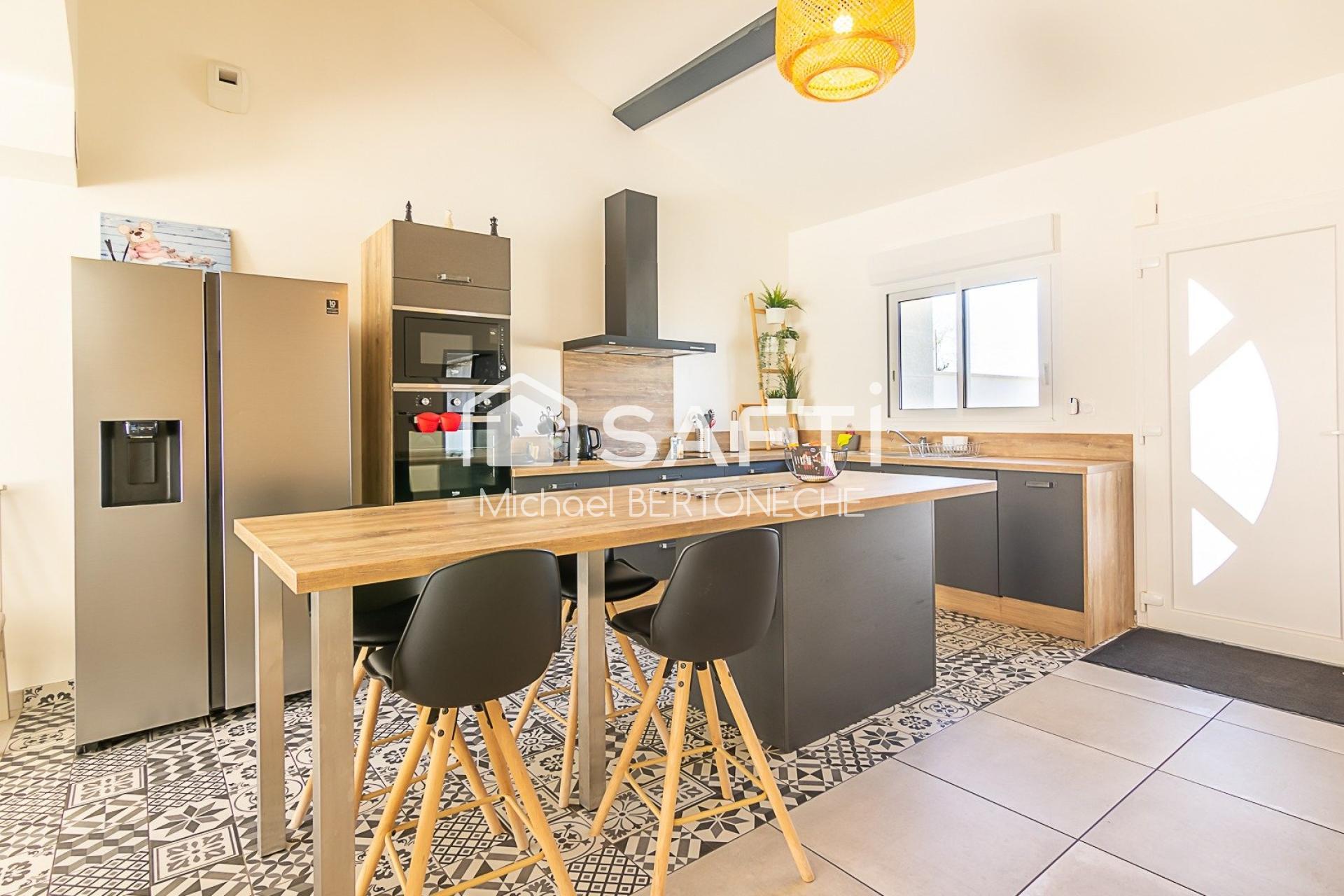 Une magnifique pièce de vie avec sa cuisine ouverte spacieuse et lumineuse