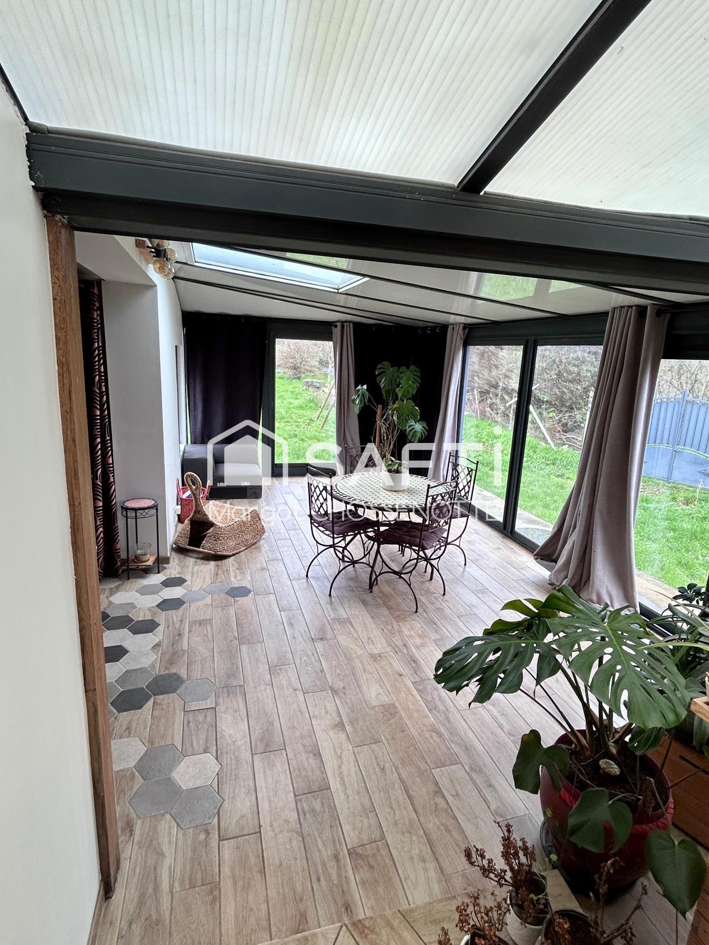 176 m², pierre apparente, véranda, 3 ch., garage, jardin arboré 4 800 m², calme, écoles et commodités proches