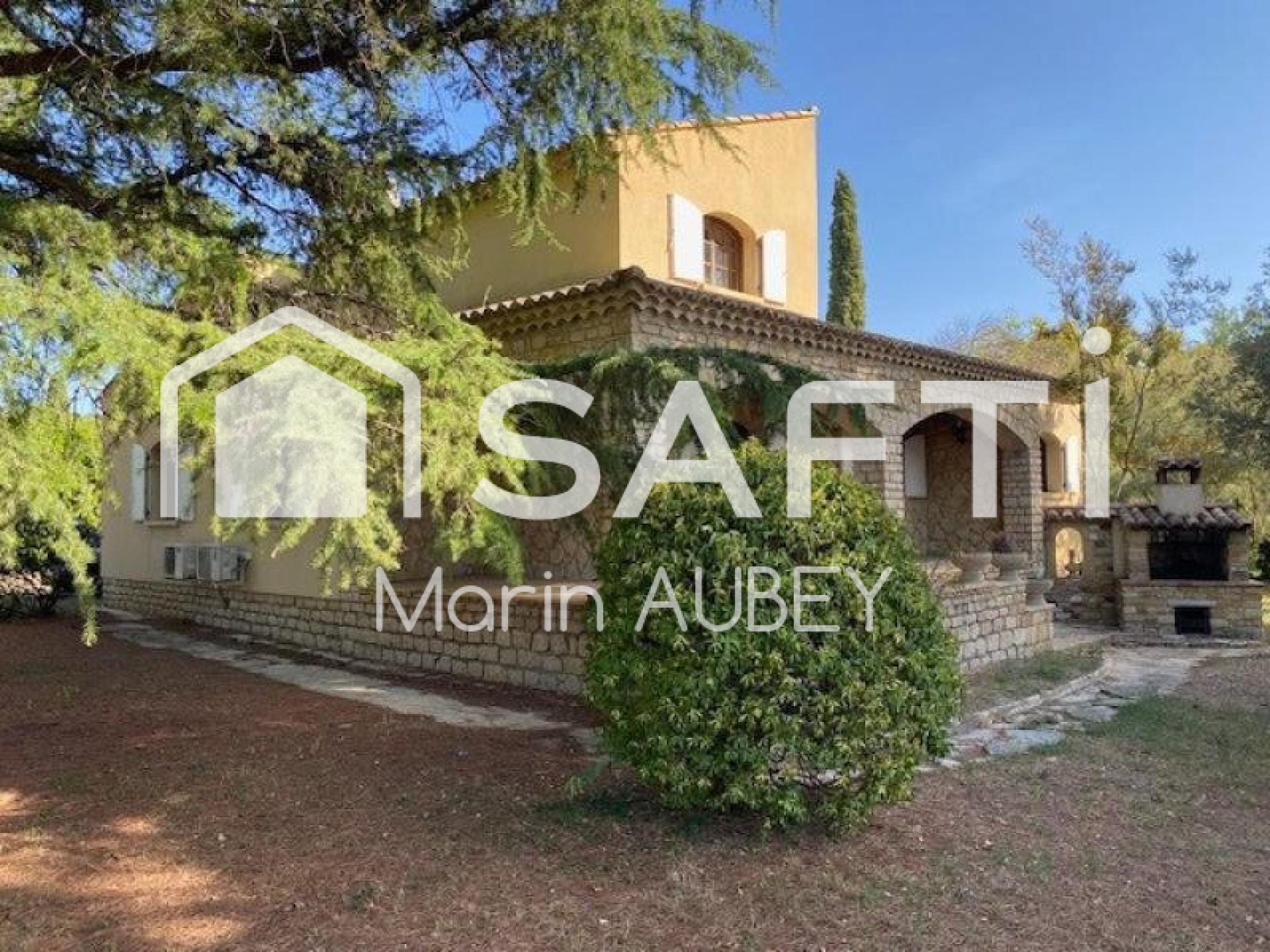 À l'extérieur, cette maison provençale dispose d'un vaste terrain de 3080 m² avec une belle orientation plein sud, une terrasse pour profiter du soleil et un garage avec deux places de parking extérieures. La façade en pierre et la toiture en tuile mécanique confèrent un charme traditionnel à la propriété.