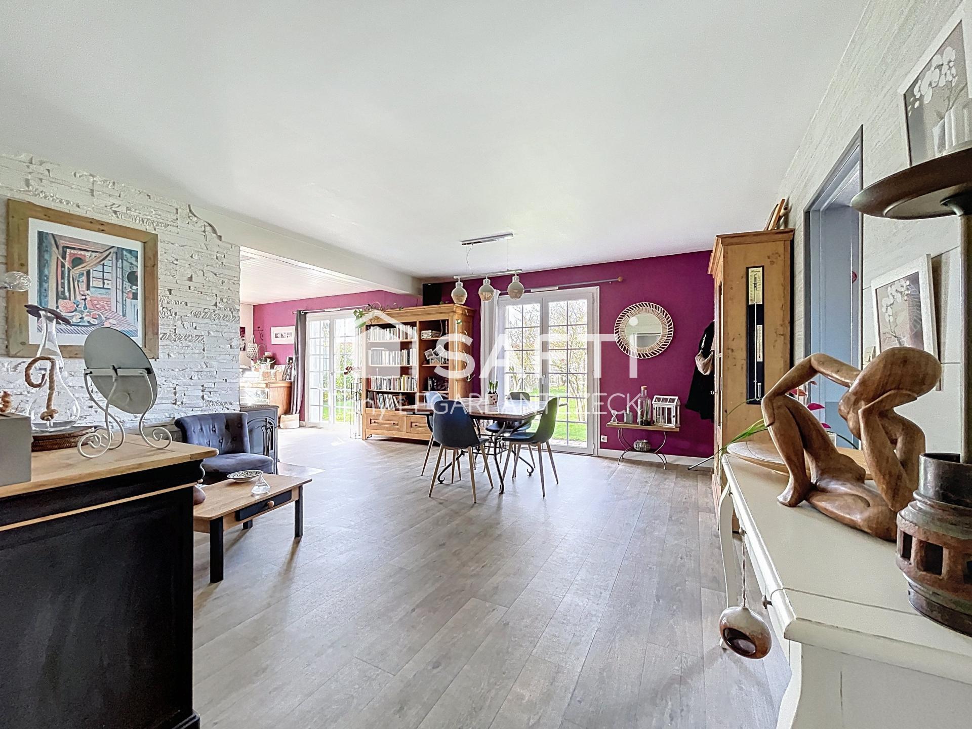 Ce beau plain-pied propose une surface habitable de plus de 160 m², composé de son hall d'entrée accueillant, sa cuisine équipée et aménagée donnant sur terrasse bois, son arrière cuisine, son bureau, sa grande pièce de vie lumineuse de plus de 40m² et dotée d'un poêle à bois donnant sur le salon, 4 chambres dont une suite parentale (grand dressing, salle d'eau et chambre 30m² ) en font une propriété agréable adaptée pour une famille ou chacun trouvera sa place. Un garage et un atelier offrent de beaux volumes de stockage et de rangement. Le jardin arboré et clos vous permettra de profiter de bon moments conviviaux en famille ou entre amis.