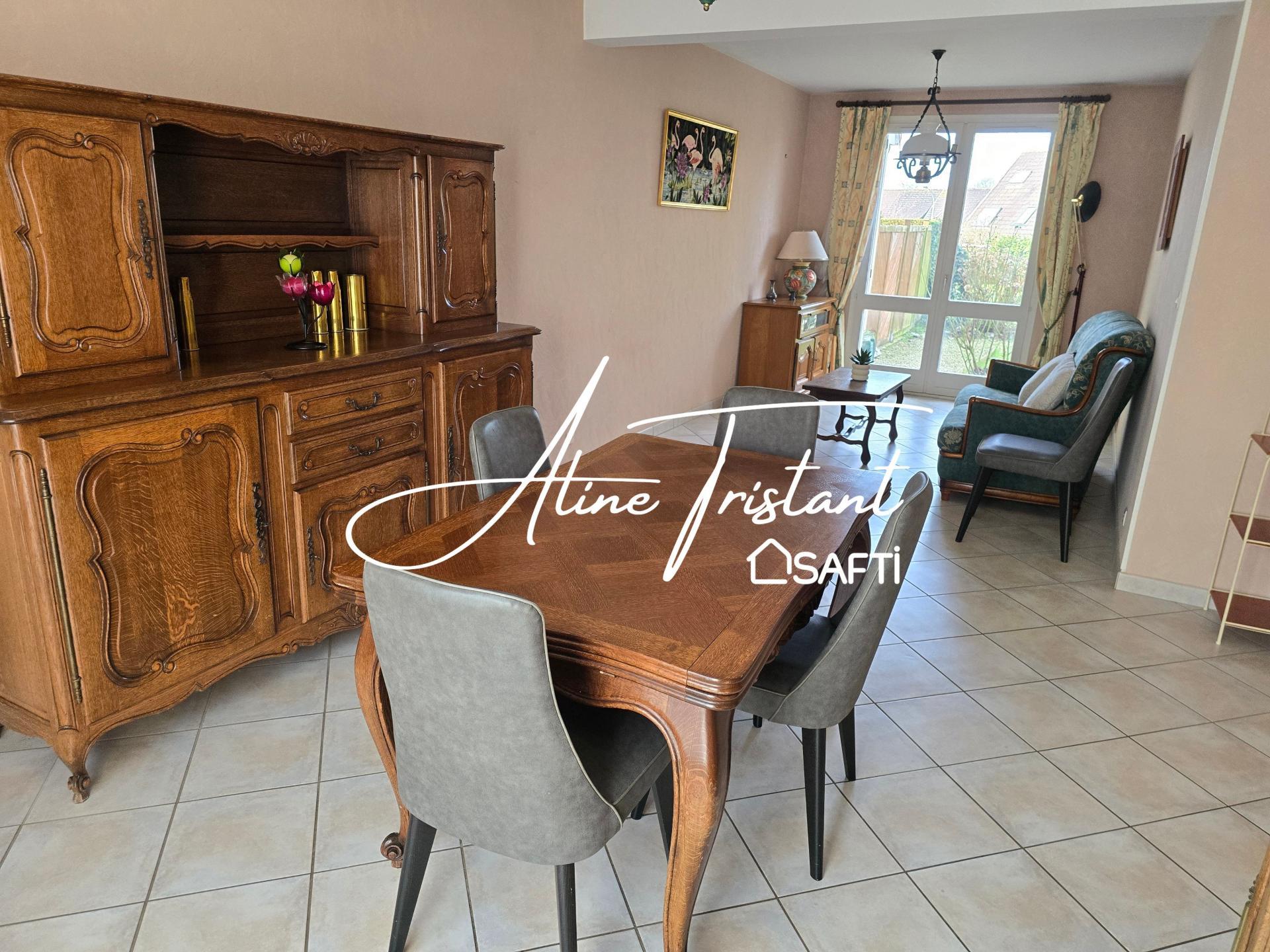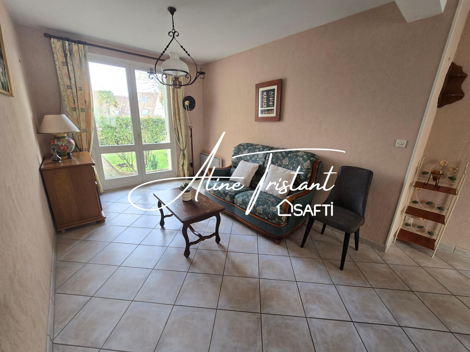 Maison de 91m2 mitoyenne par le garage sur un terrain de 220m2 clos avec cabanon de jardin.