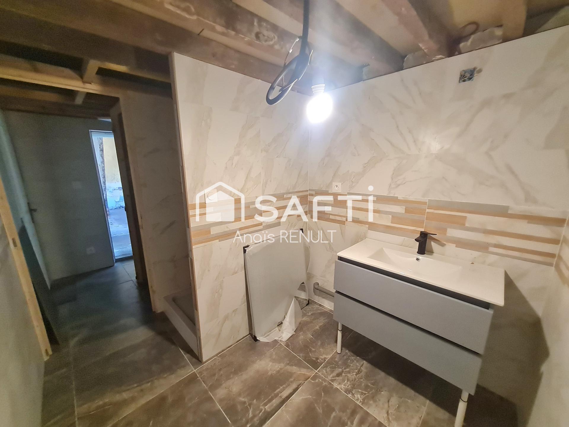 Elle se compose d'une entrée sur une cuisine, un salon, salle de douche à finir, wc séparé.