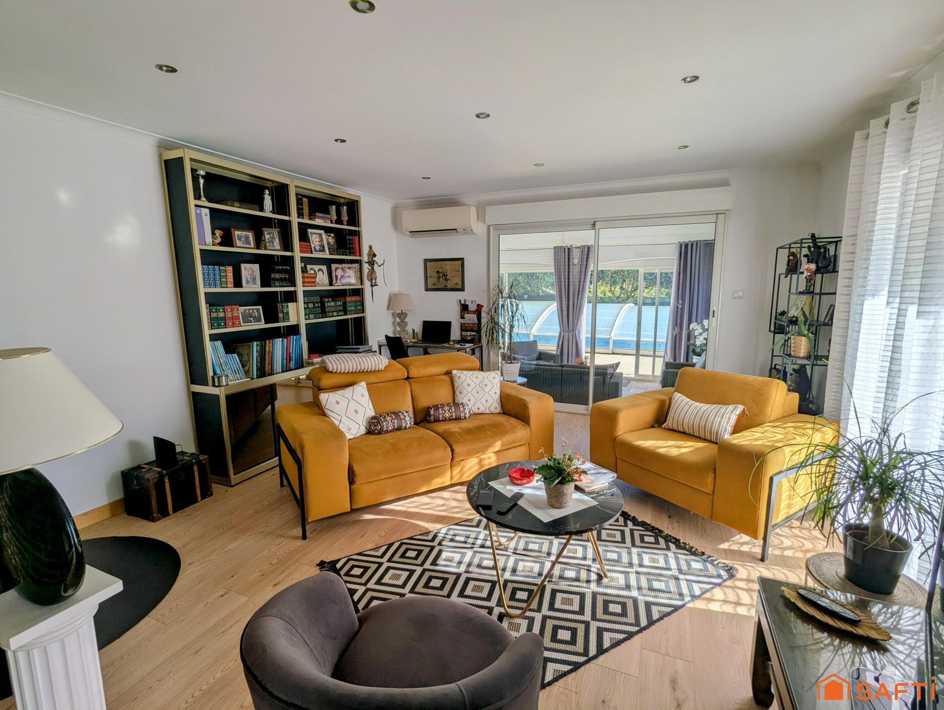 À l’extérieur, vous profiterez d’un agréable espace de détente avec piscine équipée d’un dôme, ainsi que d’un local technique, idéal pour le rangement.