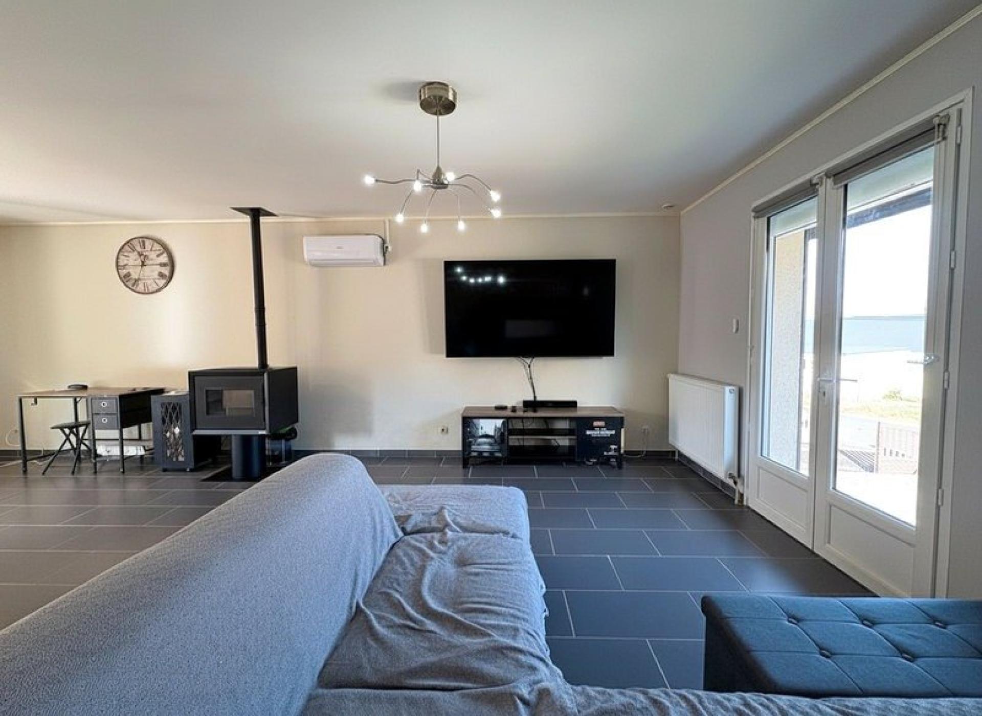 - 1 séjour lumineux et traversant avec son poêle à granulé donnant sur une véranda,