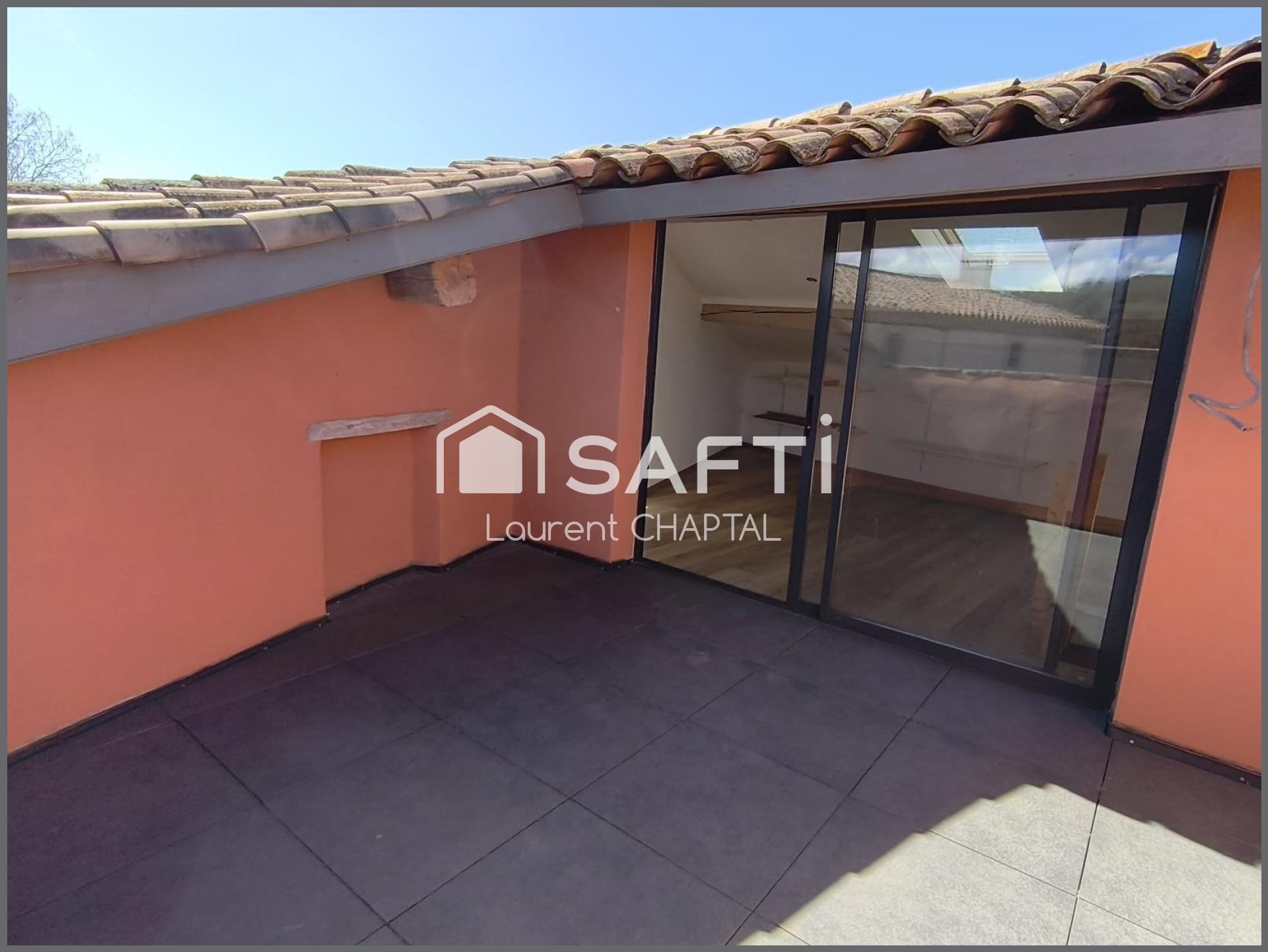 Au 2ème étage, belle pièce mansardée d'environ 22 m2 dont 12 m2 loi carrez avec accès terrasse tropézienne de 12 m2.