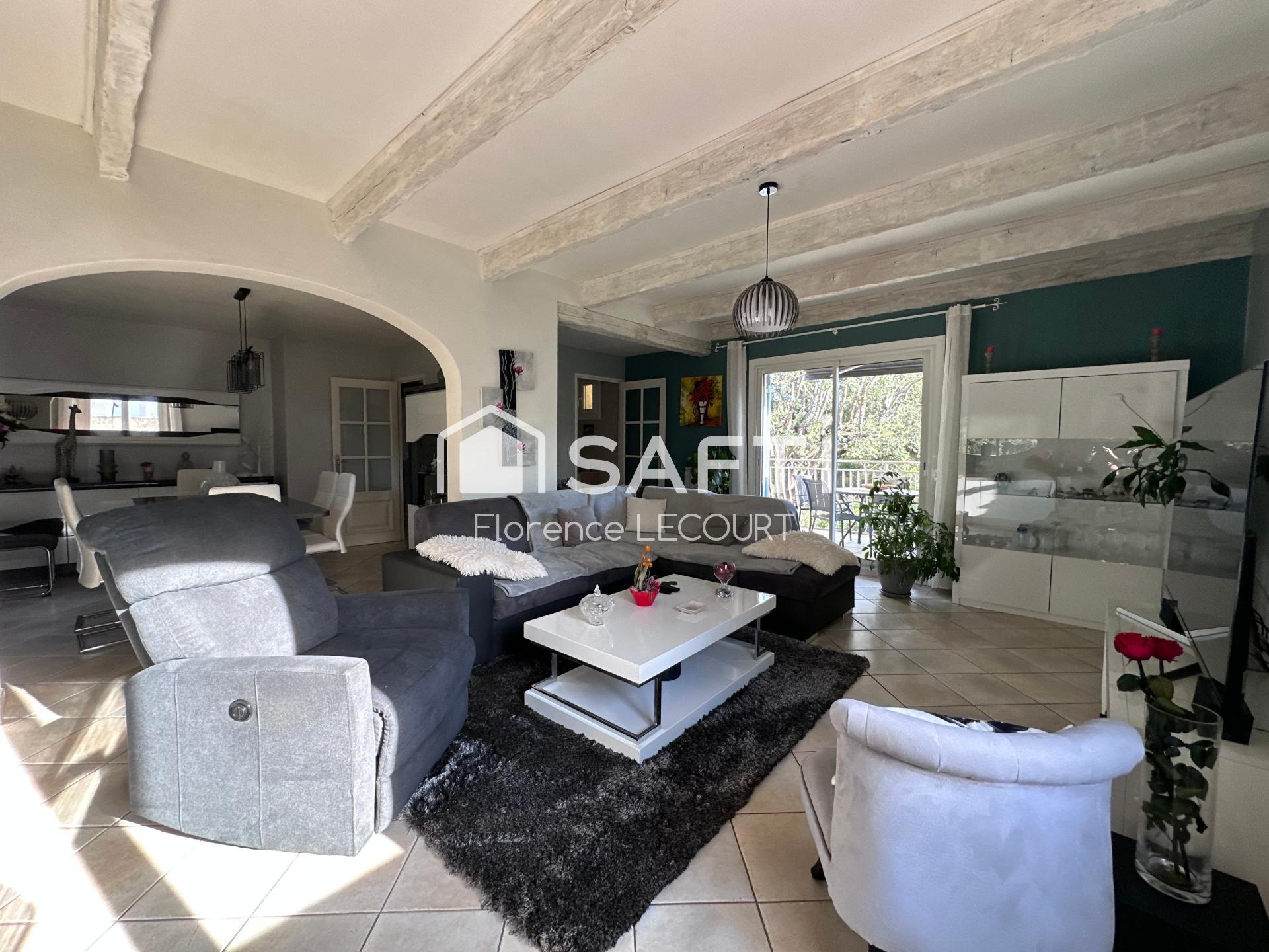 Construite en 1971, cette jolie maison de 108 m² propose un agencement optimal avec 4 pièces, dont 2 chambres lumineuses, une très belle pièce de vie donnant sur une agréable terrasse, une cuisine équipée neuve, une salle de bain et une chambre avec sa salle d'eau, une 4ème pièce vient compléter l'ensemble pour faire une 3ème chambre ou un bureau. A l'extérieur la terrasse couverte, le garage double et une pièce annexe indépendante avec sa terrasse constituent des atouts majeurs. Ce bien saura séduire par sa fonctionnalité, offrant à ses futurs habitants un cadre de vie chaleureux et convivial. Climatisation réversible, fibre, menuiseries PVC, portail électrique. A visiter