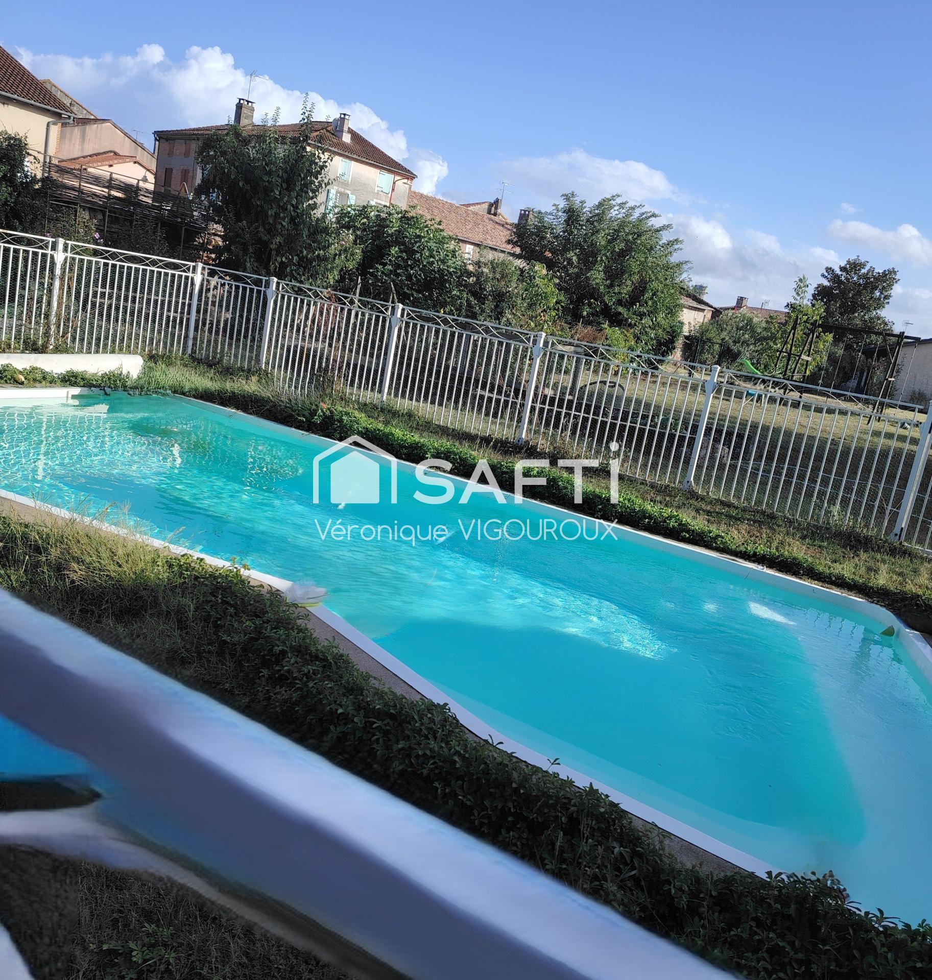À l'extérieur, la propriété comprend un grand jardin, une piscine, une terrasse offrant un espace extérieur convivial, un puits pour l'arrosage du jardin, le tout entouré d'un mur assurant intimité et sécurité à ses occupants.