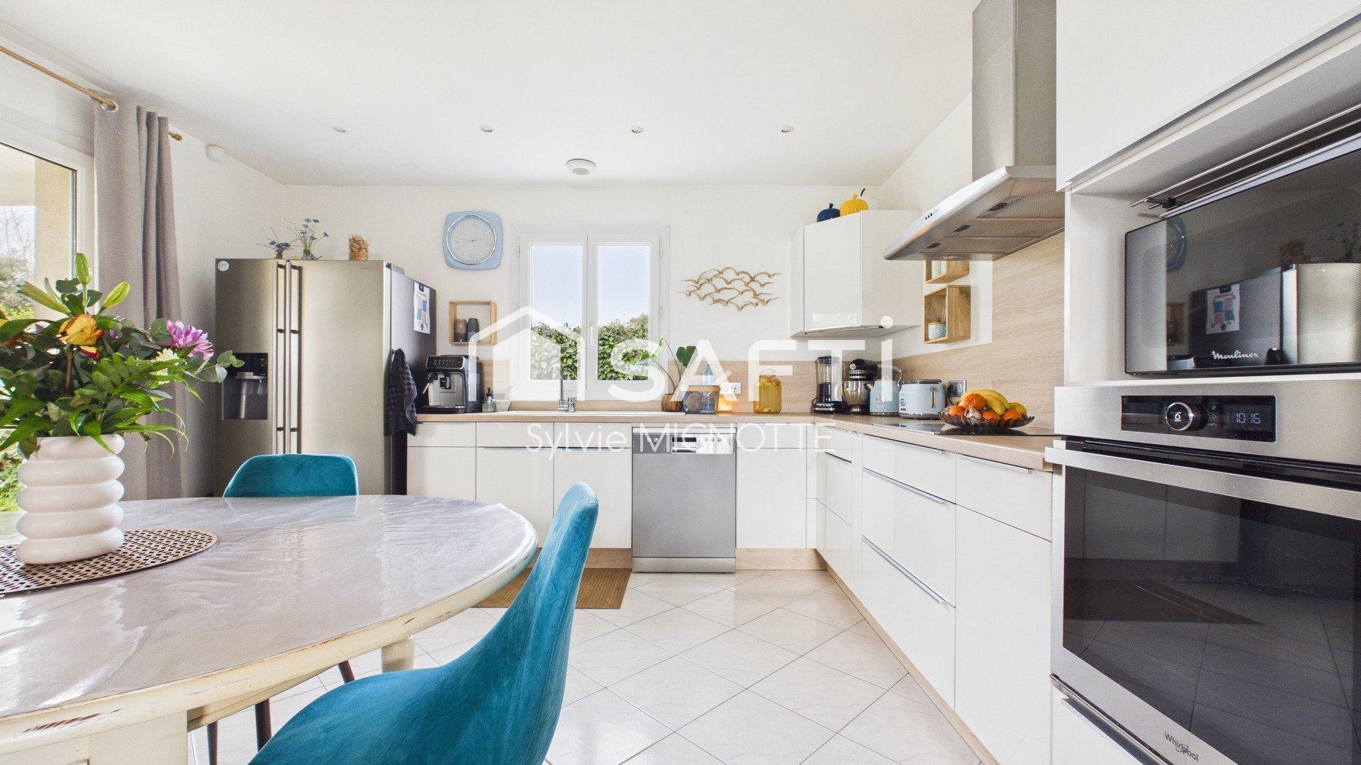 Dès l’entrée, vous serez séduits par une belle pièce de vie lumineuse avec cuisine ouverte, idéale pour partager de bons moments en famille ou entre amis.