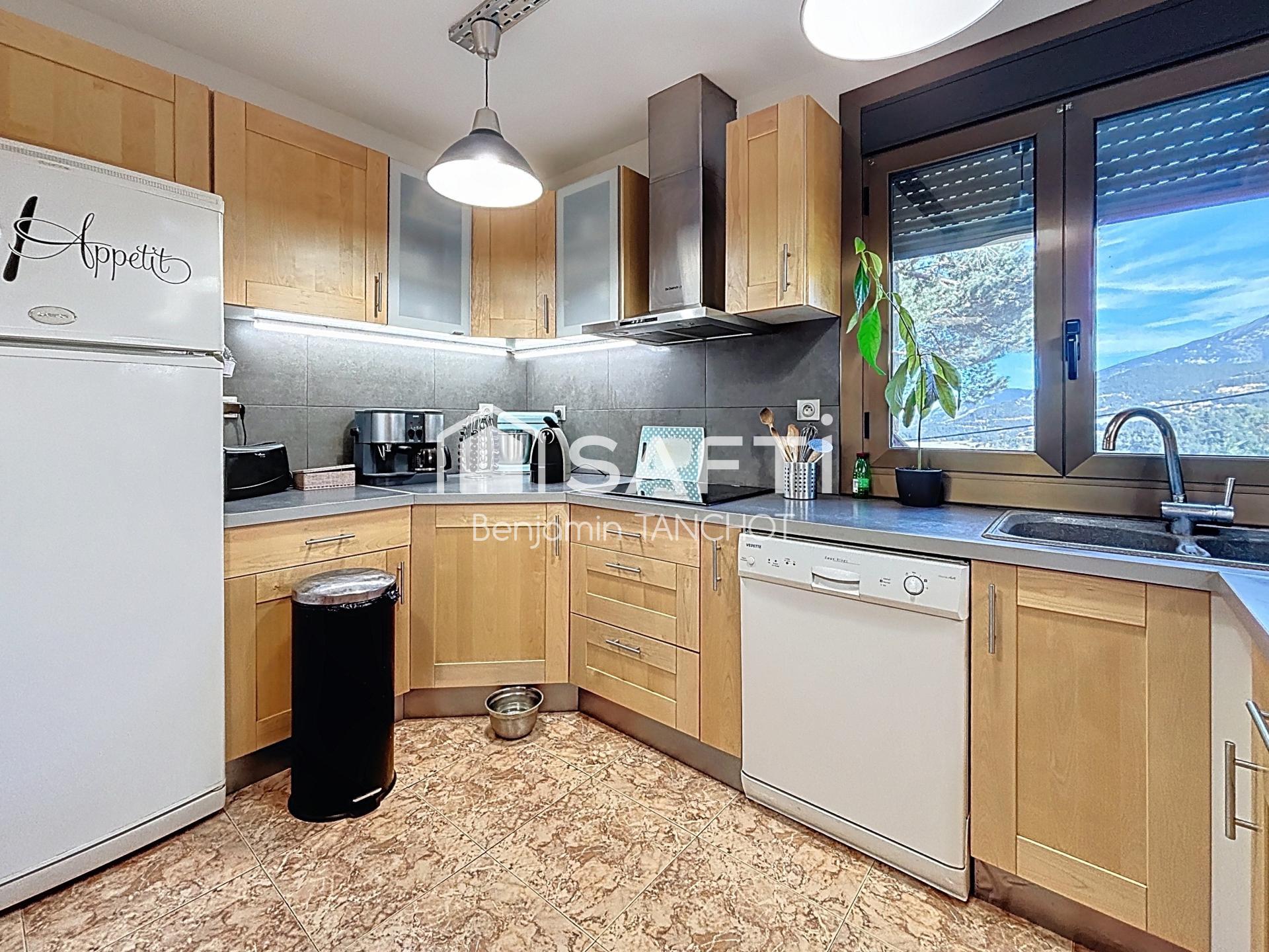 Côté nuit, quatre chambres accueillantes, une salle d’eau, une salle de bain et deux WC indépendants composent l’espace. À l’extérieur, la cuisine d’été et le grand balcon plein sud permettent de profiter du panorama et du soleil tout au long de la journée.