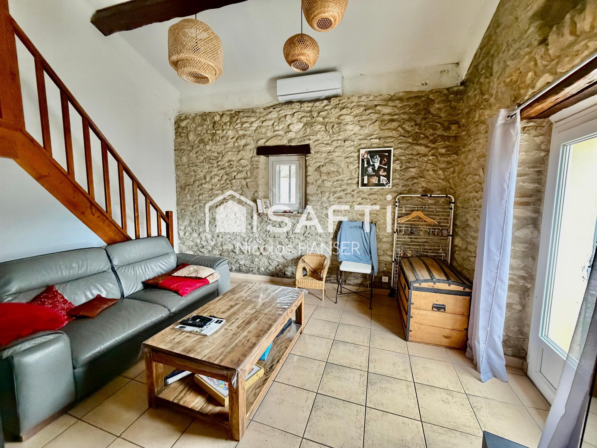 Maison de charme en pierre sur le secteur du Viget à Saint Privat des Vieux. Cette maison, mitoyenne d'un côté, alliant authenticité et modernité, vous séduira par son calme et son ambiance chaleureuse. L'intérieur se compose d'un salon cathédrale avec poêle à bois et d'une cuisine récente et toute équipée. A l'étage vous trouverez une chambre avec salle de douche et WC ainsi qu'une 2ème chambre sous comble. A l'extérieur vous pourrez garer 2 véhicules dans la cour et disposerez d'une grande terrasse au sud ainsi qu'un jardin avec un abri de 16m2 environ.