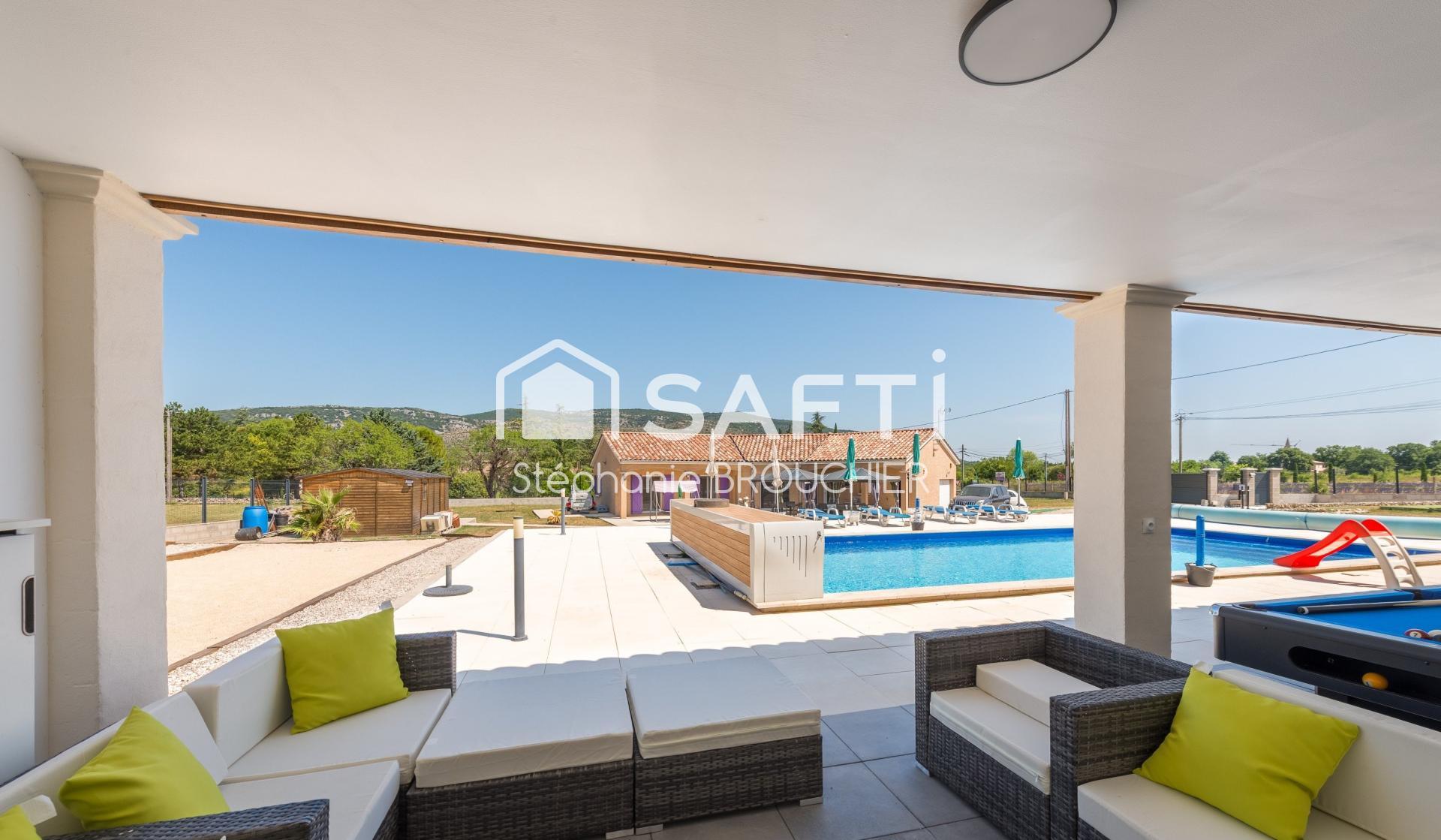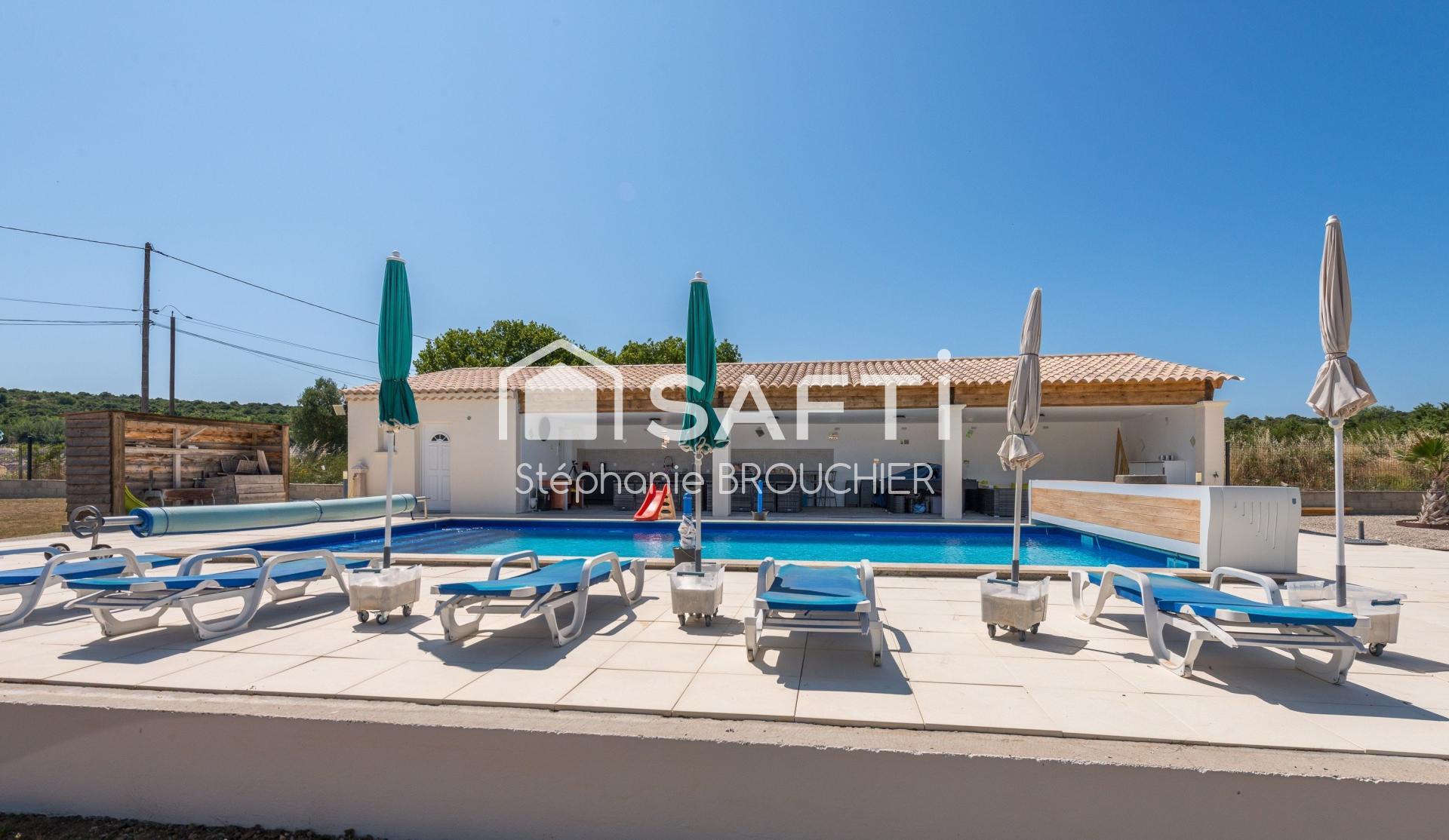 À l'extérieur, les résidents pourront profiter d'une piscine de 5x11 mètres, d'un grand pool house équipé d'une cuisine, d'un local technique et de toilettes. Le terrain clôturé et aménagé de 2600m² offre un espace extérieur agréable et convivial, parfait pour des moments de détente en famille ou entre amis. Construite en 2018, cette maison allie confort et modernité de manière harmonieuse.