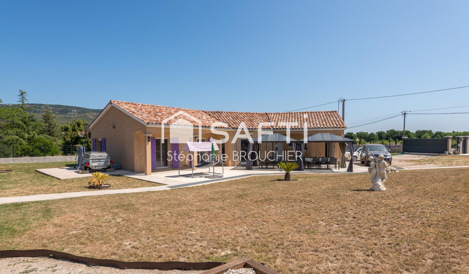 Sur un terrain de 2600 m², cette maison de 119 m² de plain-pied offre un garage attenant de 45m²avec son coin buanderie, un salon / séjour lumineux ,spacieux et une cuisine ouverte entièrement équipée. Avec 4 chambres confortables, une salle de bain comprenant douche et baignoire, ainsi que 2 toilettes, cette propriété bénéficie d'une terrasse couverte idéale pour profiter de l'extérieur.