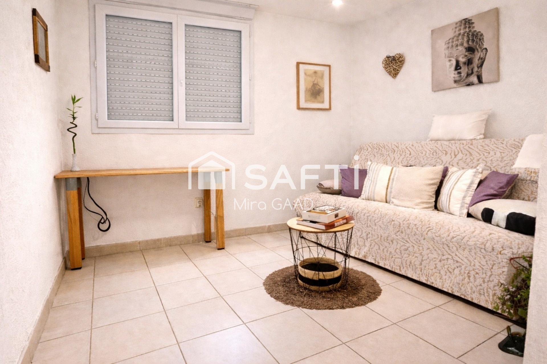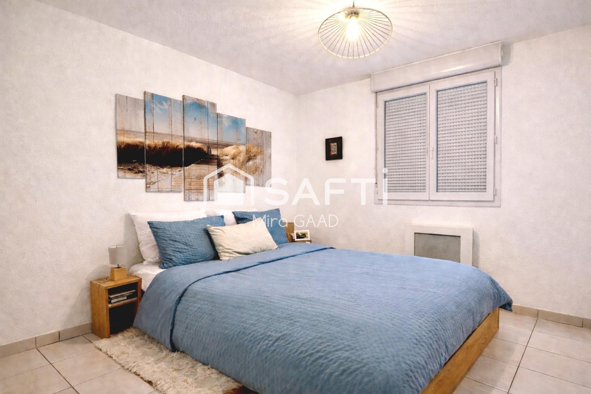 À l'intérieur, cette maison de plain-pied T3, se distingue par un séjour lumineux avec cuisine ouverte, deux chambres avec placard, une grande salle de bain double vasque, des WC séparés, et un garage. Refait à neuf avec clim réversible Son agencement optimal propose des espaces fonctionnels pour un confort de vie au quotidien, en alliant praticité et luminosité dans chaque pièce.