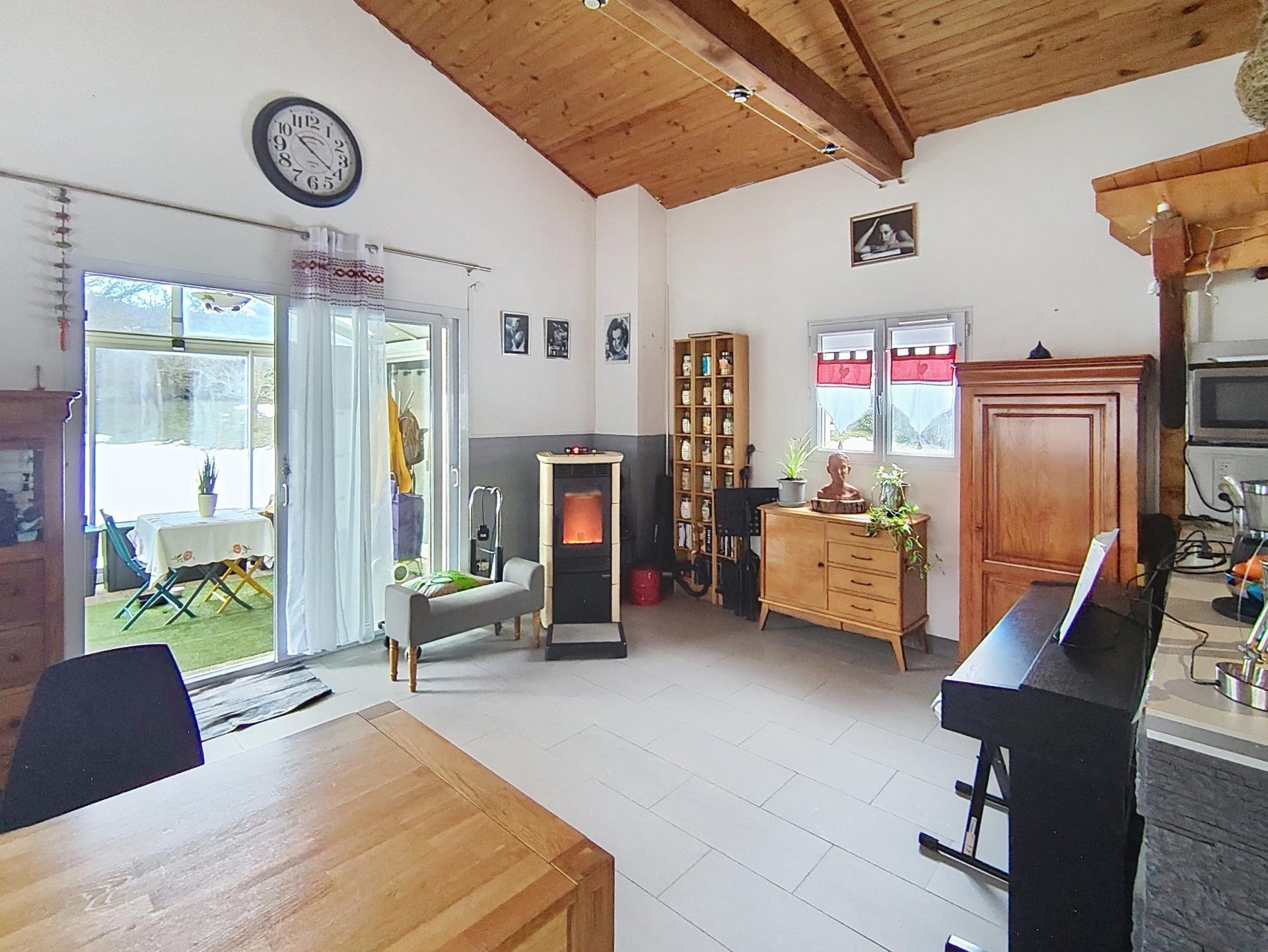 Dans ce petit hameau du plateau matheysin, au calme mais non isolée, cette jolie maison d’artiste de plain pied de 2002 style loft vous provoquera sans aucun doute un effet coup de cœur !