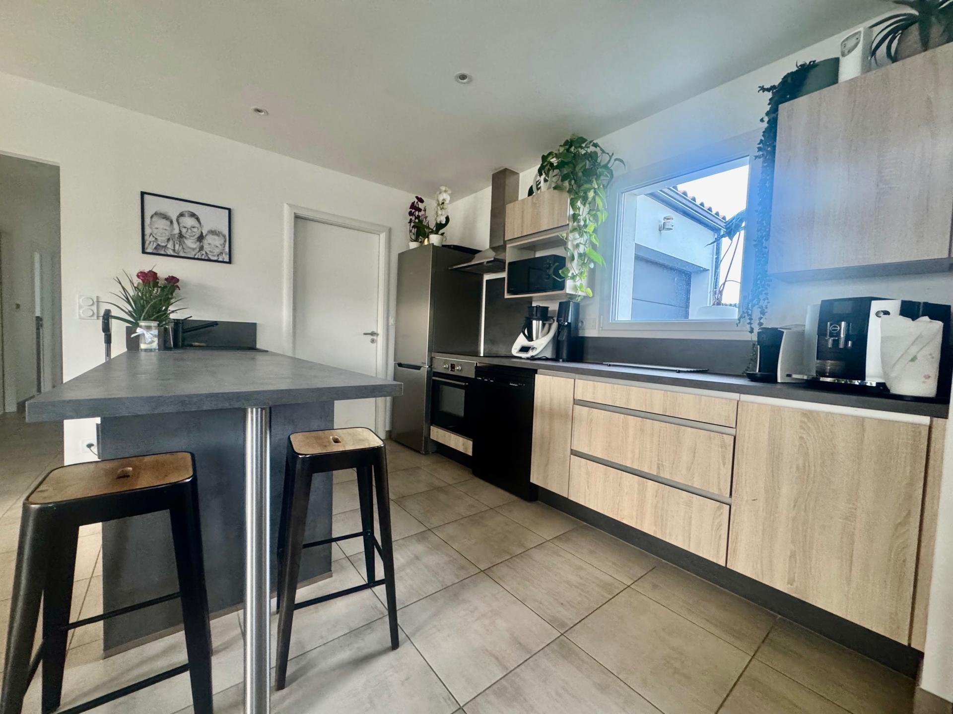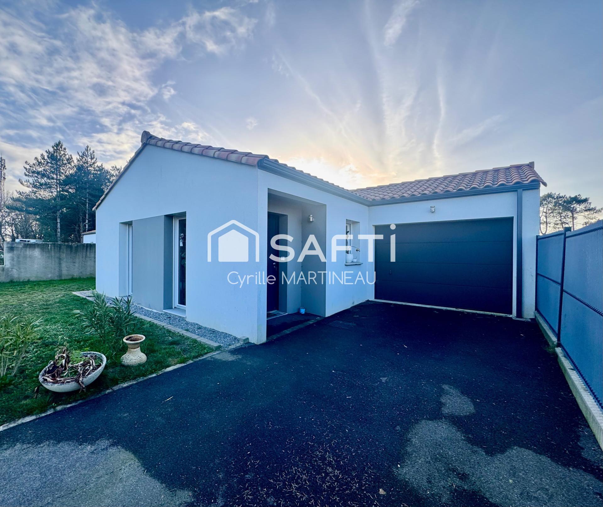 Cyrille Martineau vous propose en EXCLUSIVITE cette maison de 87m² construite en 2020. Elle se compose d'une agréable pièce de vie très lumineuse de 37m² avec cuisine aménagée et semi équipée ( plaque, hotte, four) donnant un accès direct à la terrasse , une lingerie, un dégagement desservant trois chambres avec chacune un placard, une salle d'eau avec douche italienne, un wc.
