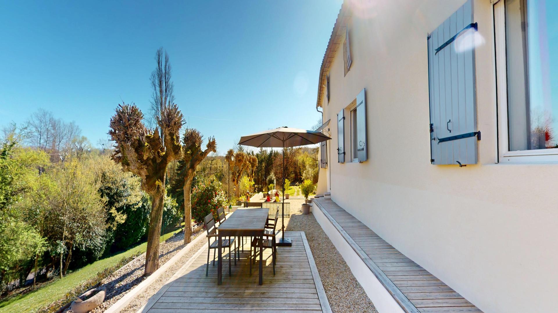 Implantée sur un terrain de près de 6 000 m², la propriété se prolonge à l’extérieur avec une piscine, un vaste pool house avec cuisine d’été et plusieurs dépendances, offrant un fort potentiel d’aménagement.