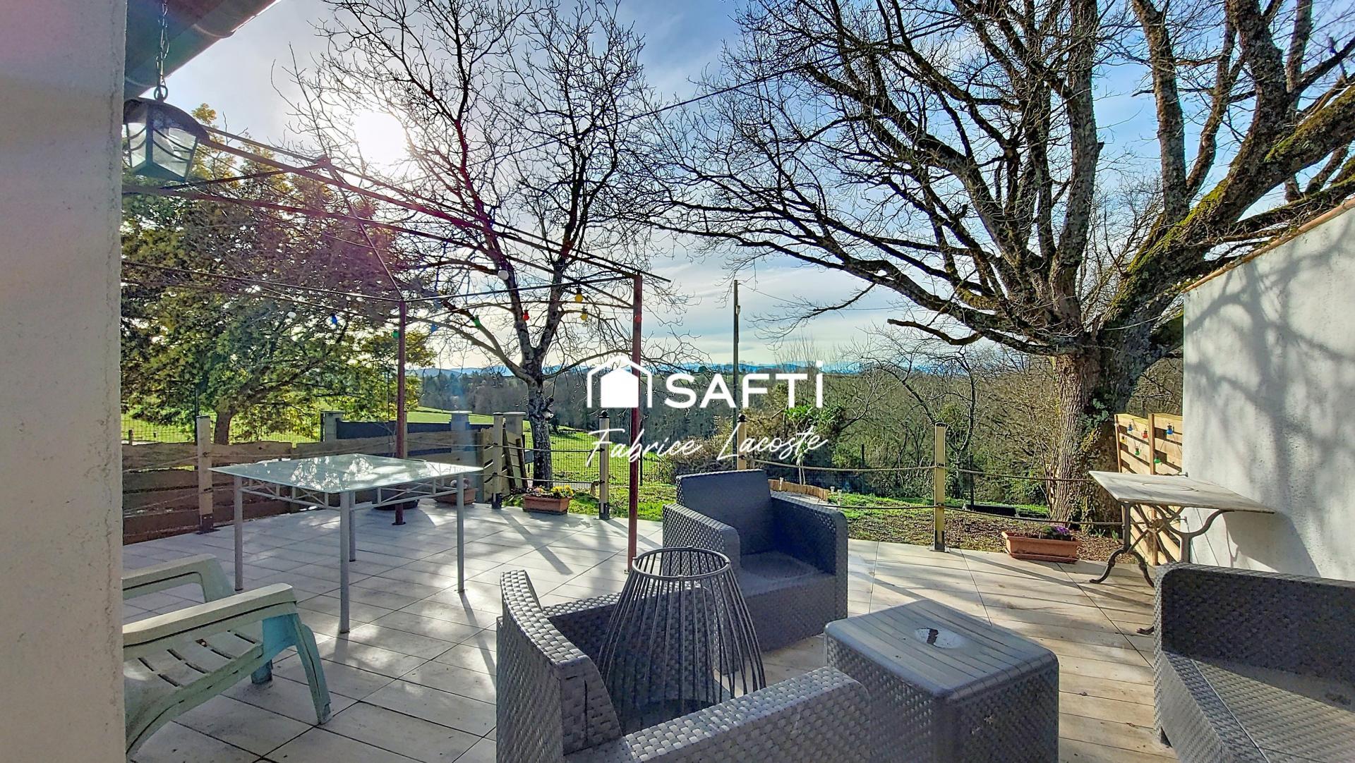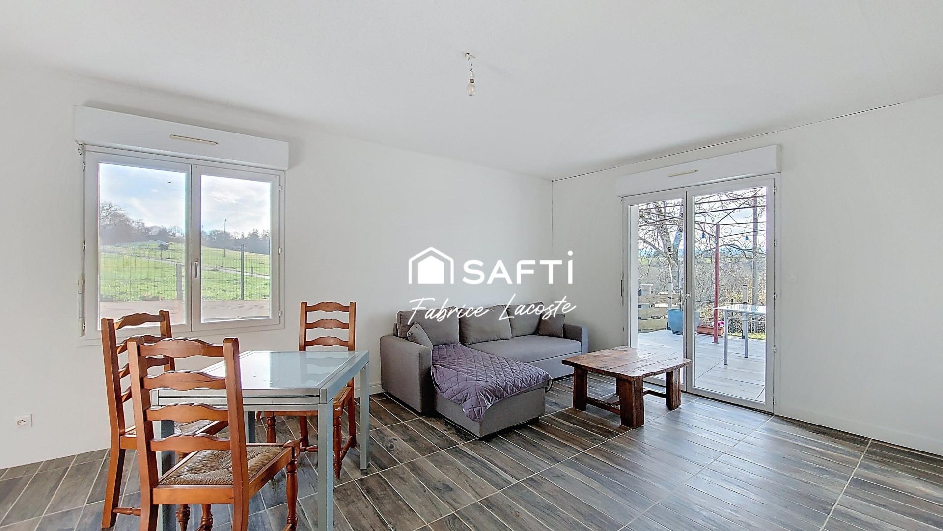 Les extérieurs offrent une terrasse de 30 m² exposée sud, un garage avec rochelle de stockage, un poulailler avec enclos et un espace extérieur entièrement exploitable. La maison bénéficie d’un environnement calme et naturel, propice à la détente, et l’environnement proche permet de profiter d’une vue dégagée sur les Pyrénées, apportant luminosité et panorama à proximité.