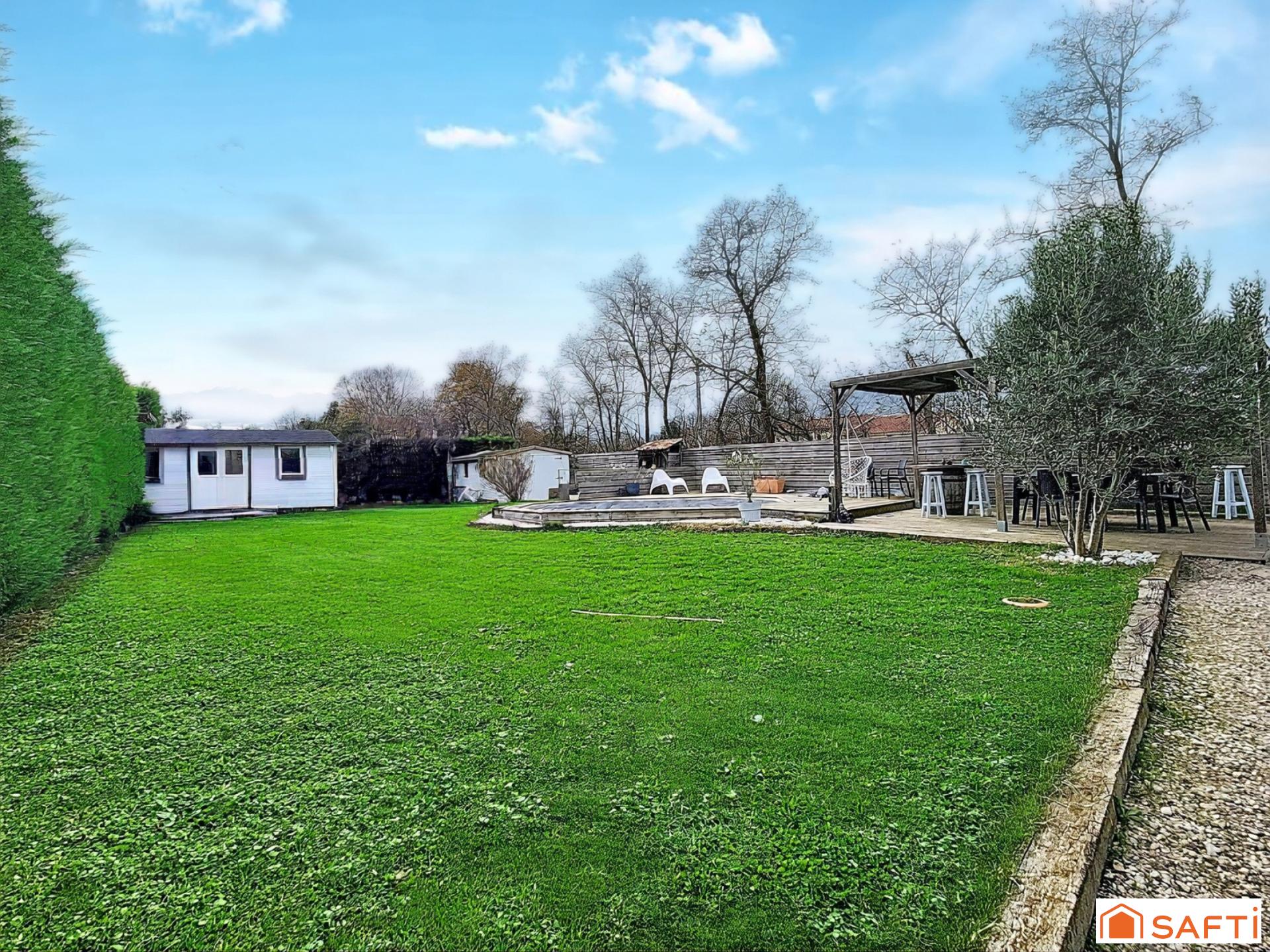 Villa 148 m², 4 ch + bureau, studio de jardin, véranda, piscine semi-enterrée, jardin 734 m², calme, limite St-Didier-de Formans
