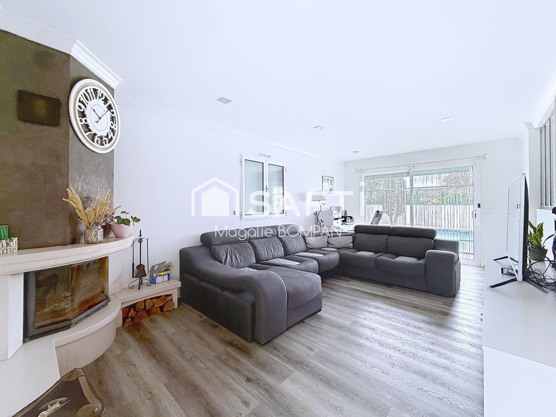 Maison familiale 140 m² sans travaux, piscine, proche écoles et commerces, 4 chambres dont 1 en RDC, garage attenant, environnement calme.
