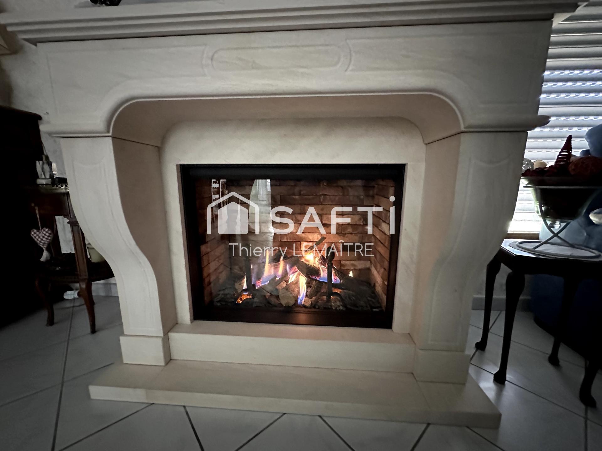 La cheminée fonctionne au gaz de ville avec une télécommande.