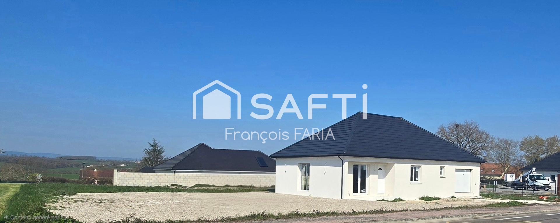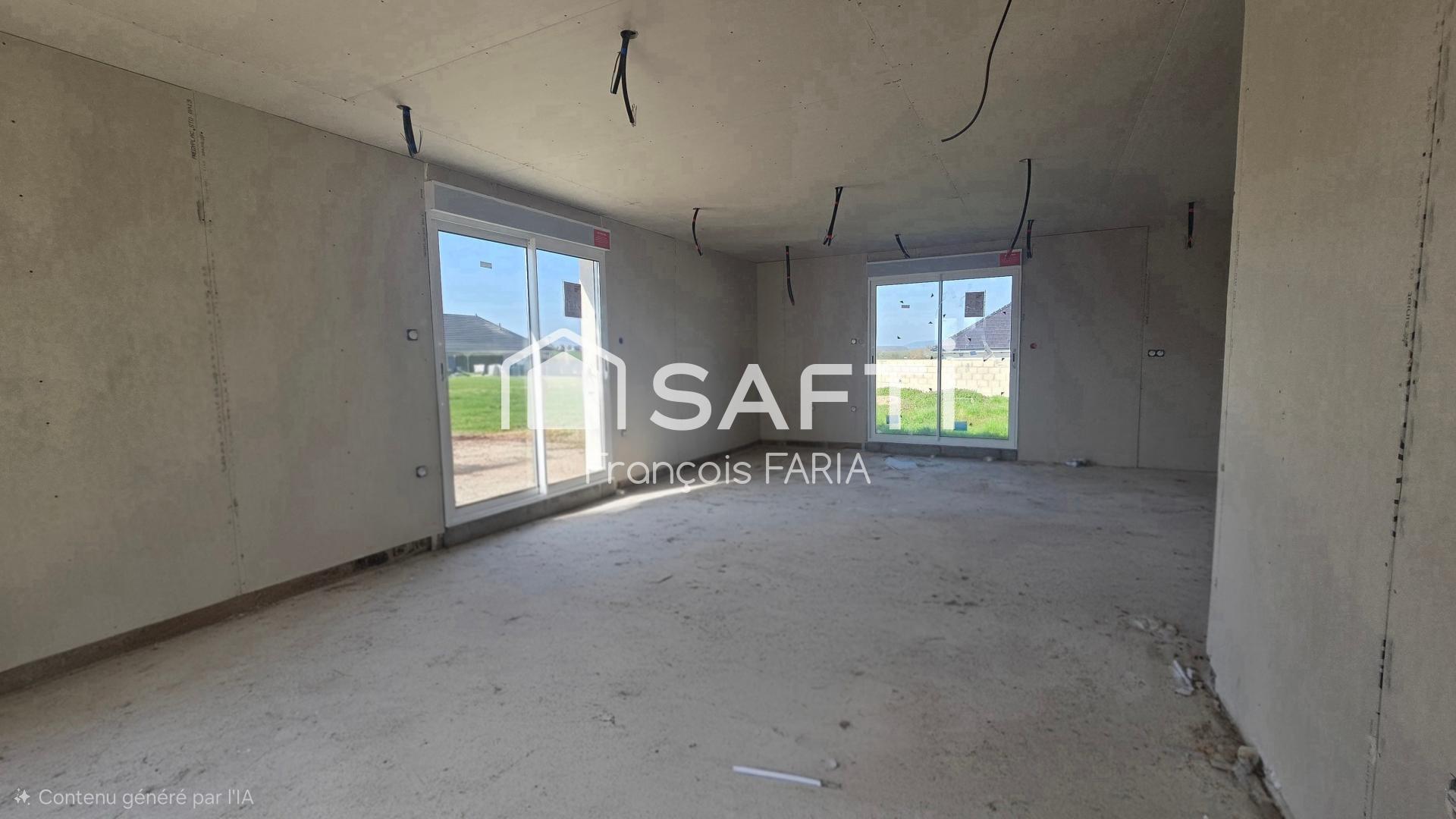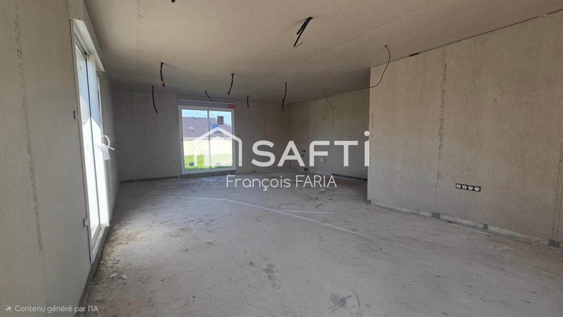Maison neuve de 2024, grand terrain, plain-pied, murs en brique, proche écoles et route express à 5 min.