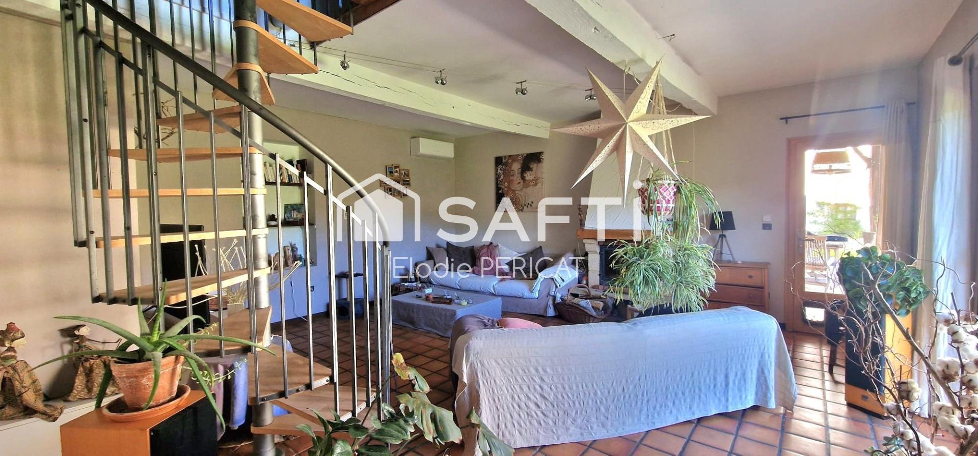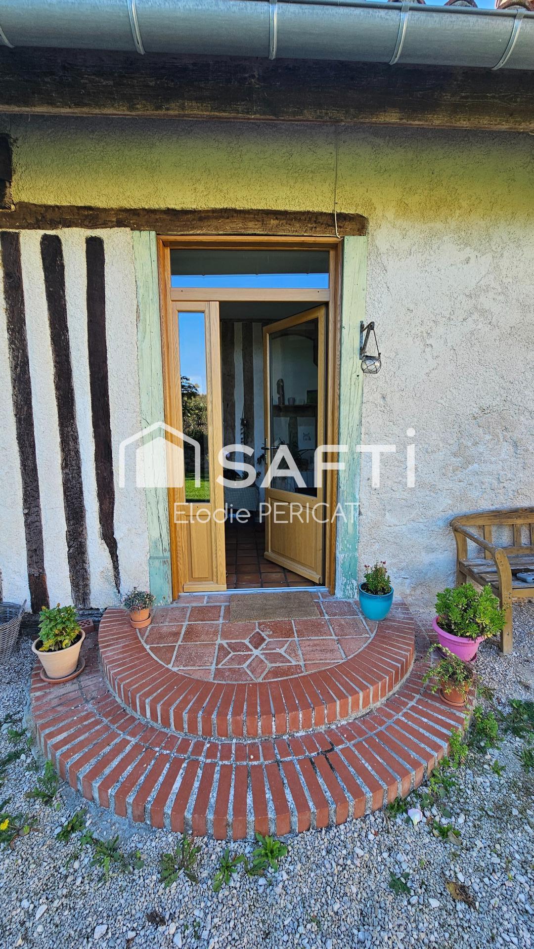 Maison rénovée avec colombages et poutres apparentes, alliant charme et confort moderne. Rez-de-chaussée: entrée, grande cuisine conviviale, chambre avec mezzanine fermable pouvant devenir 4? chambre, bureau ou espace ados, salon lumineux donnant sur terrasse. À l’étage : une chambre accessible par escalier colimaçon. Au-dessus de la buanderie/terrasse, une chambre indépendante avec accès extérieur, idéale pour chambre d’amis, bureau, atelier ou location saisonnière (sanitaires accessibles dans la maison). Chauffage économique : insert bois, poêle granulés, pompe à chaleur air/air réversible et convecteurs. Eau chaude : ballon thermodynamique 2024. Consommation réelle annuelle : 1 tonne granulés + 4 stères bois + 800?€/an électricité. Isolation complète : doublage placo + laine de verre, laine de bois combles/rampants, toiture révisée et en bon état, double vitrage et portes anti-effraction. Terrain intime 1 800?m², à l’abri des regards et au calme.