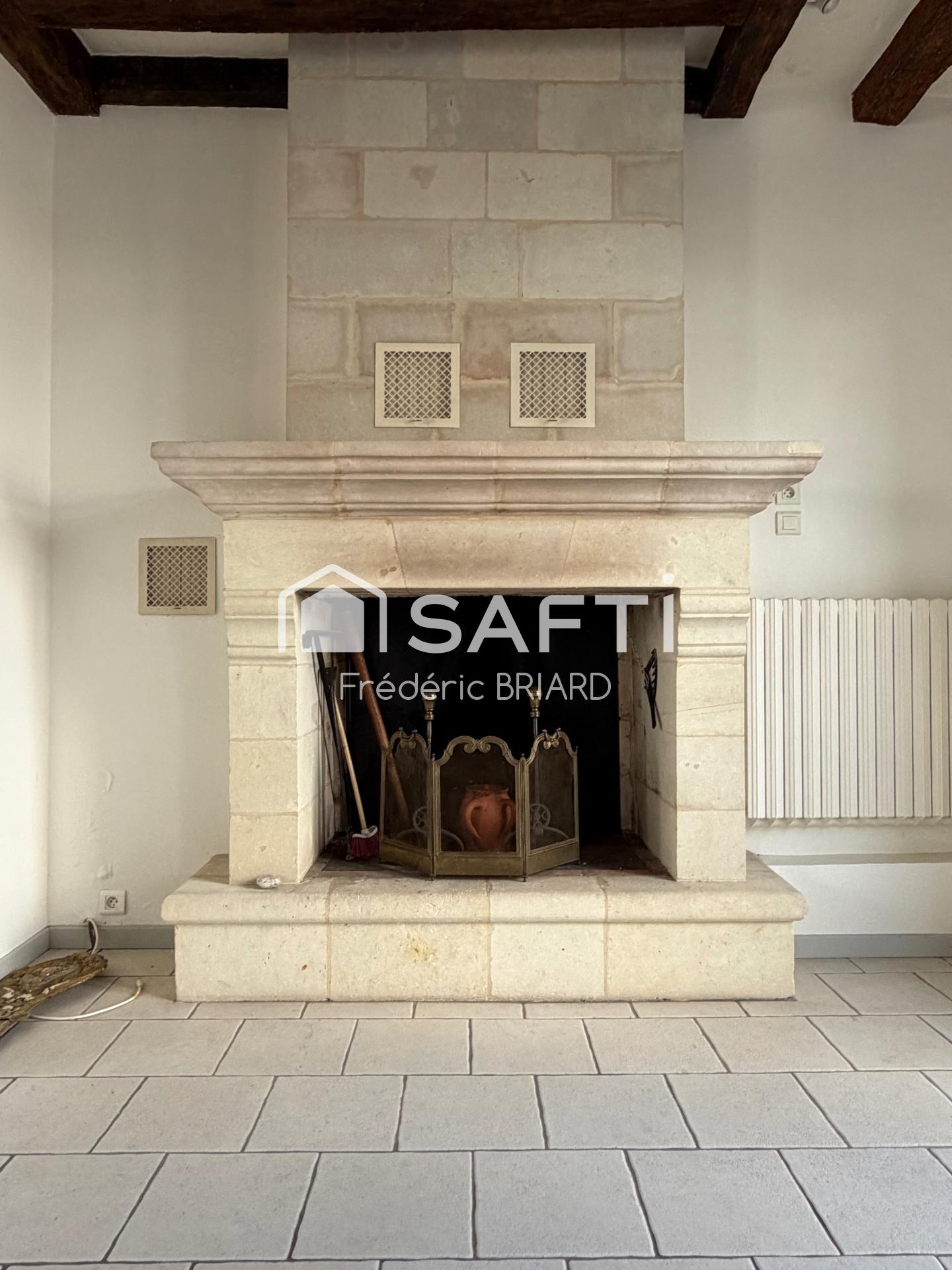 Frédéric BRIARD & SAFTI. Saumur, secteur Saint Lambert. Proche commodités. Maison de charme en tuffeau du 17ème de 130m2 habitable. Terrain clos et arboré de 792m2 avec piscine sécurisée et chauffée, 155m2 de dépendances, potager et belles terrasses. Double accès sur la propriété (2 portails). RdC : séjour avec cheminée, cuisine dinatoire, salle d'eau avec wc, bureau (chambre) et chaufferie (chaudière gaz récente). 1er étage via 2 escaliers : 2 chambres (possibilité de 3) et salle de bain avec wc. Taxe foncière 1100€. Contact : frederic.briard@safti.fr ou 07.82.40.40.85.