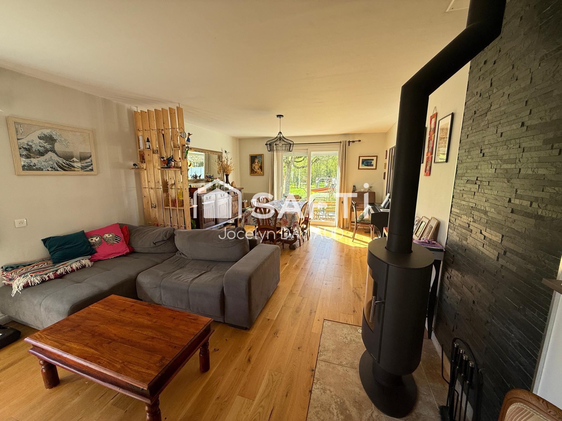 À l'intérieur, cette maison T6 datant de 1973 offre 125 m² de surface habitable répartis en 6 pièces, incluant 4 chambres et un bureau. La résidence dispose d'une cuisine aménagée et équipée, d'un lumineux salon/séjour avec un poêle à bois récent, une salle de bain, un WC, un garage et différentes dépendances, répondant à tous les besoins d'une famille souhaitant profiter d'un cadre de vie spacieux et fonctionnel. Pompe à chaleur récente. Classe énergétique C et A.