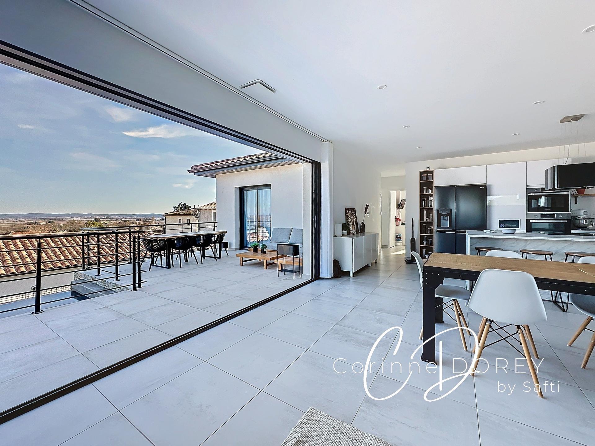 Entre Nîmes et Alès, au cœur du village recherché de Sauzet, cette villa contemporaine récente d’environ 115 m² séduit par son architecture élégante, sa luminosité et sa position dominante.